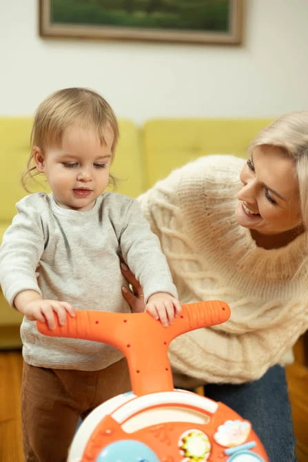 Der 2-in-1 Lauflernwagen-Tisch Spark ist ein innovatives Spielzeug, das die Entwicklung Ihres Kindes auf vielen Ebenen unterstützt. Es ist die perfekte Wahl für Kinder, die bereits ihre ersten Schritte machen. Es kann als Lauflernwagen oder als interaktiver Spieltisch mit vielen Attraktionen verwendet werden.