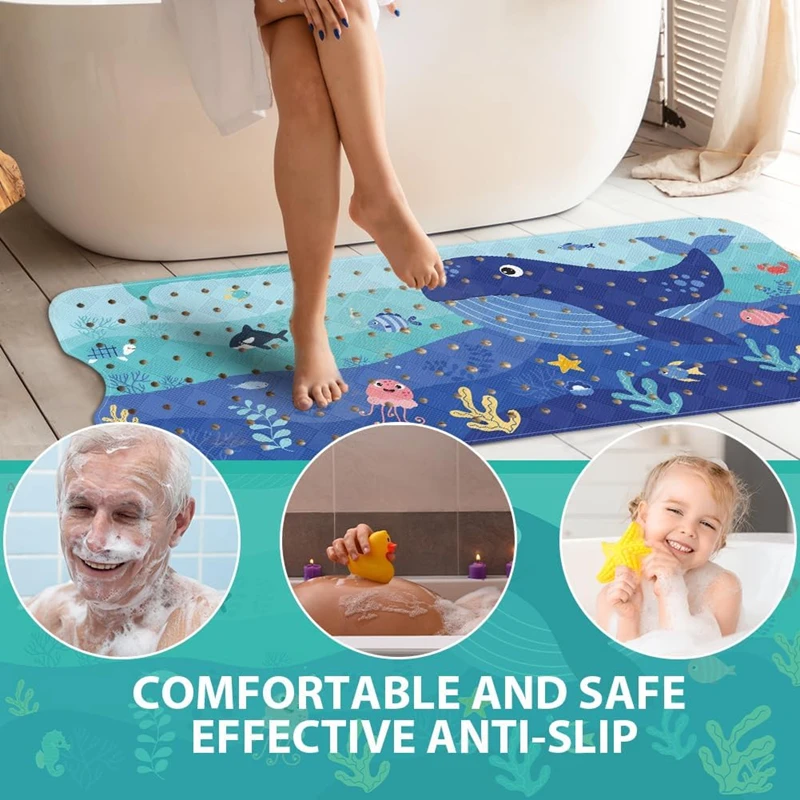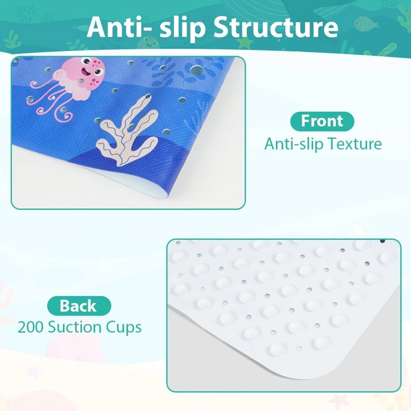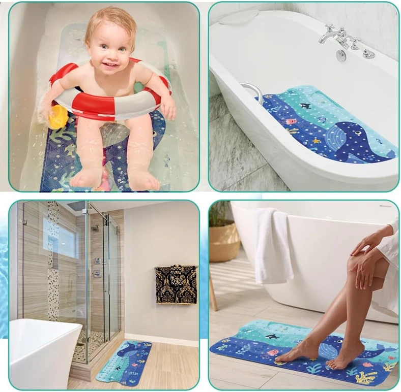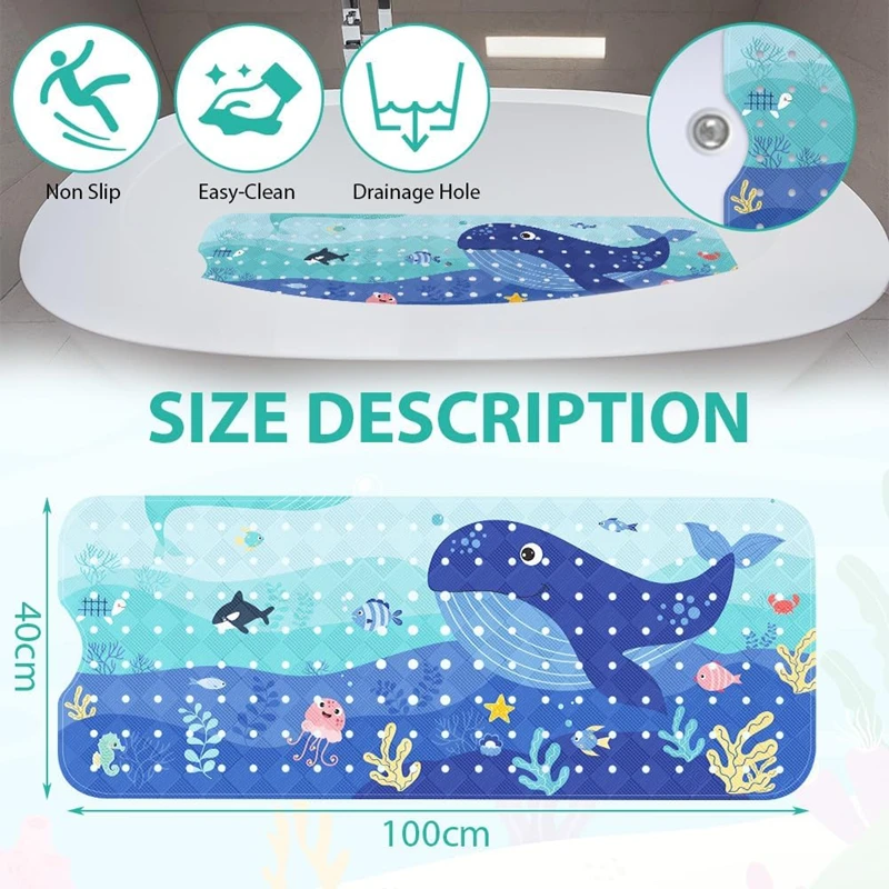 Anti-Rutsch-Badewannenmatte für Kinder — 100×40 cm, 200+ Saugnäpfe, Meeres-Tier-Motiv