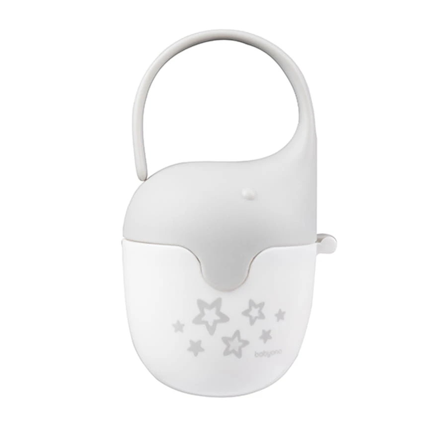 Der Schnullerbehälter in Elefantenform ist ein praktisches Produkt für alle Reisen. Er schützt den Schnuller Ihres Kindes vor Verschmutzungen, ist bequem in der Anwendung und einfach zu befestigen. Der flexible Rüssel ermöglicht die Befestigung des Behälters am Kinderwagen, Autositz oder an der Wickeltasche. Hergestellt aus sicheren Materialien, enthält kein Bisphenol A. Eigenschaften: bietet effektiven Schutz vor Verschmutzungen beim Spaziergang, auf Reisen und zu Hause ermöglicht eine sichere und hygienische Aufbewahrung des Schnullers in Ihrer Tasche, Ihrem Rucksack oder Ihrer Jackentasche Produkt aus sicherem Kunststoff, frei von Bisphenol A