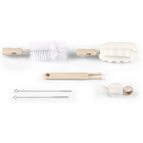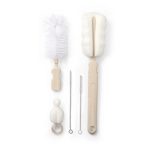 Universelles Bürstenset ermöglicht eine gründliche Reinigung von Flaschen, Saugern, Bechern, Strohhalmen, Röhrchen und anderen Baby- und Pflegeartikeln. Verschiedene Bürstenaufsätze passen sich den zu reinigenden Gegenständen an und erreichen schwer zugängliche Stellen. Die Öffnungen in den Griffen der Bürsten dienen zum Aufhängen und Trocknen vor dem nächsten Gebrauch. SICHERHEITSINFORMATIONEN Das Produkt sollte vor jedem Gebrauch überprüft werden. Bei ersten Anzeichen von Beschädigung oder Abnutzung – entsorgen. Das Produkt ist kein Spielzeug. Vor dem ersten Gebrauch und nach jedem Gebrauch das Produkt mit kochendem Wasser übergießen (nicht kochen!) und trocknen lassen. Es wird empfohlen, die Bürsten von Hand zu waschen. Bitte bewahren Sie die Verpackung zu Informationszwecken auf. Die Verpackung außerhalb der Reichweite von Kindern aufbewahren. Eigenschaften: • 2 austauschbare Aufsätze zum Reinigen von Flaschen • verschiedene Bürstenaufsätze für die Reinigung unterschiedlicher Gegenstände • Öffnungen in den Griffen zum Aufhängen und Trocknen Im Set enthalten: • Flaschenbürste • Flaschenschwamm • Saugerschwamm • 2 x Bürsten für Strohhalme und Röhrchen