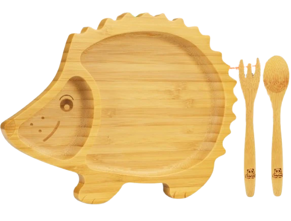 BABYLOVIT Bambusschale mit Saugnapf + Löffel und Gabel IGEL