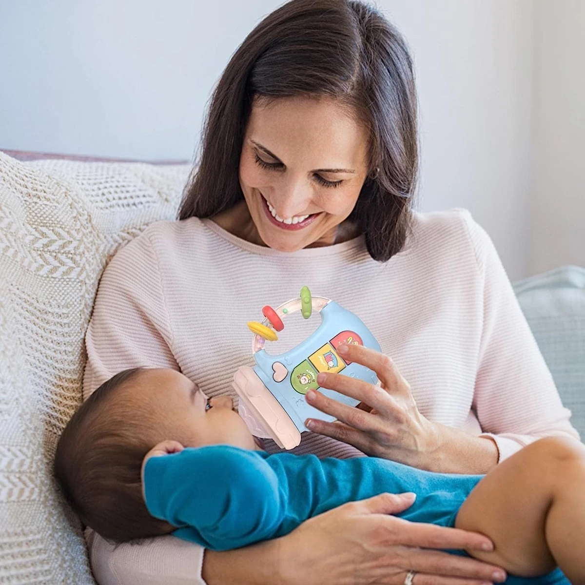 BAMBEBE Geräusche, Lichter + Silikon-Beißring und Rassel ENGLISCH