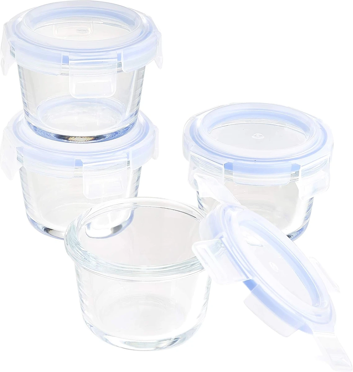 Portioniere, lagere und nimm Mahlzeiten „to go“ ohne Chaos mit. 4 Mini-Behälter (144 ml) aus robustem Borosilikatglas sind ideal für Reste, Soßen, Cremesuppen, Snacks und Zutaten für Meal Prep.