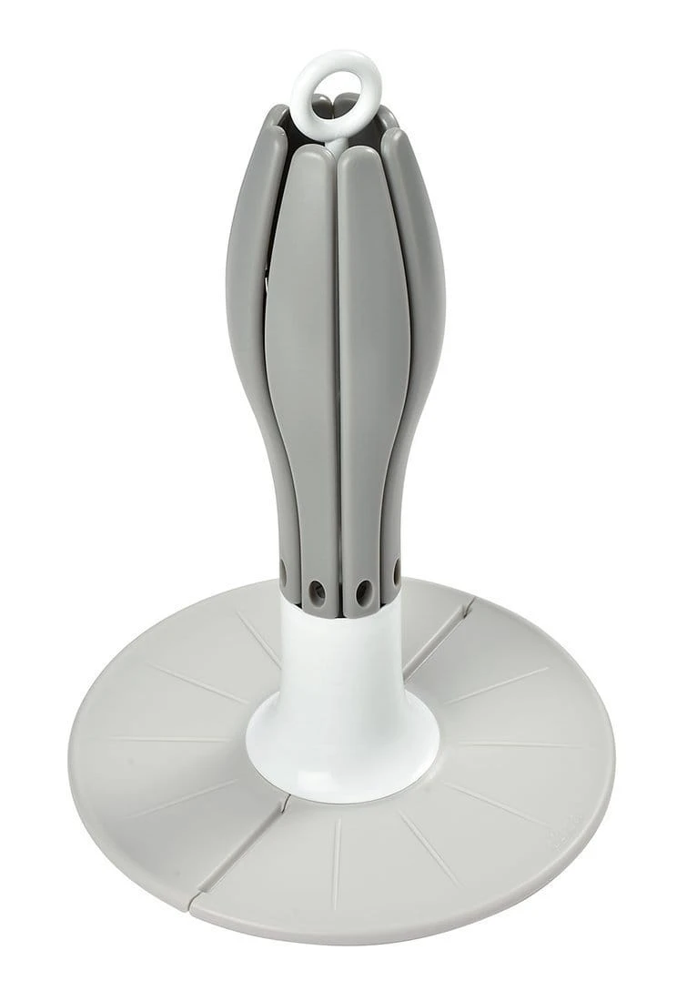 - Praktisches, klappbares Trockengestell für Flaschen und weiteres Fütterzubehör der französischen Marke BEABA. Passend für alle auf dem Markt erhältlichen Flaschenmodelle. Modernes, ansprechendes Design – auf einem hellgrauen Tablett befindet sich ein weißer Bügel mit rundem Griff an der Spitze und vier kurzen, stempelähnlichen Haltern für Zubehör. Rund um den Bügel sind 8 lange, blütenblattähnliche, dunkelgraue Arme für Flaschen angeordnet. Jeder zweite Arm hat eine zusätzliche Ausbuchtung für kleinere Accessoires oder Flaschenteile wie Sauger, Deckel, Verschlüsse usw. Die ergonomische Form erleichtert die Luftzirkulation, sodass die Gegenstände schnell trocknen und wenig Platz auf der Küchenarbeitsplatte einnehmen. Das Wasser tropft auf eine abnehmbare Silikonunterlage. Das gesamte Produkt ist so konzipiert, dass es maximale Hygiene und Benutzerkomfort bietet. Der Ständer lässt sich einfach mit einer Hand zusammenklappen. Alle Teile sind spülmaschinen- oder handwaschbar.