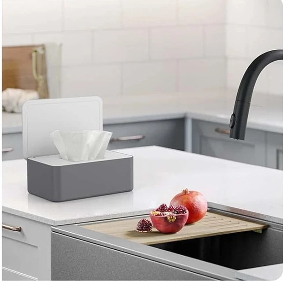 - Die Box ist hoch, sodass auch eine große Packung Feuchttücher hineinpasst.