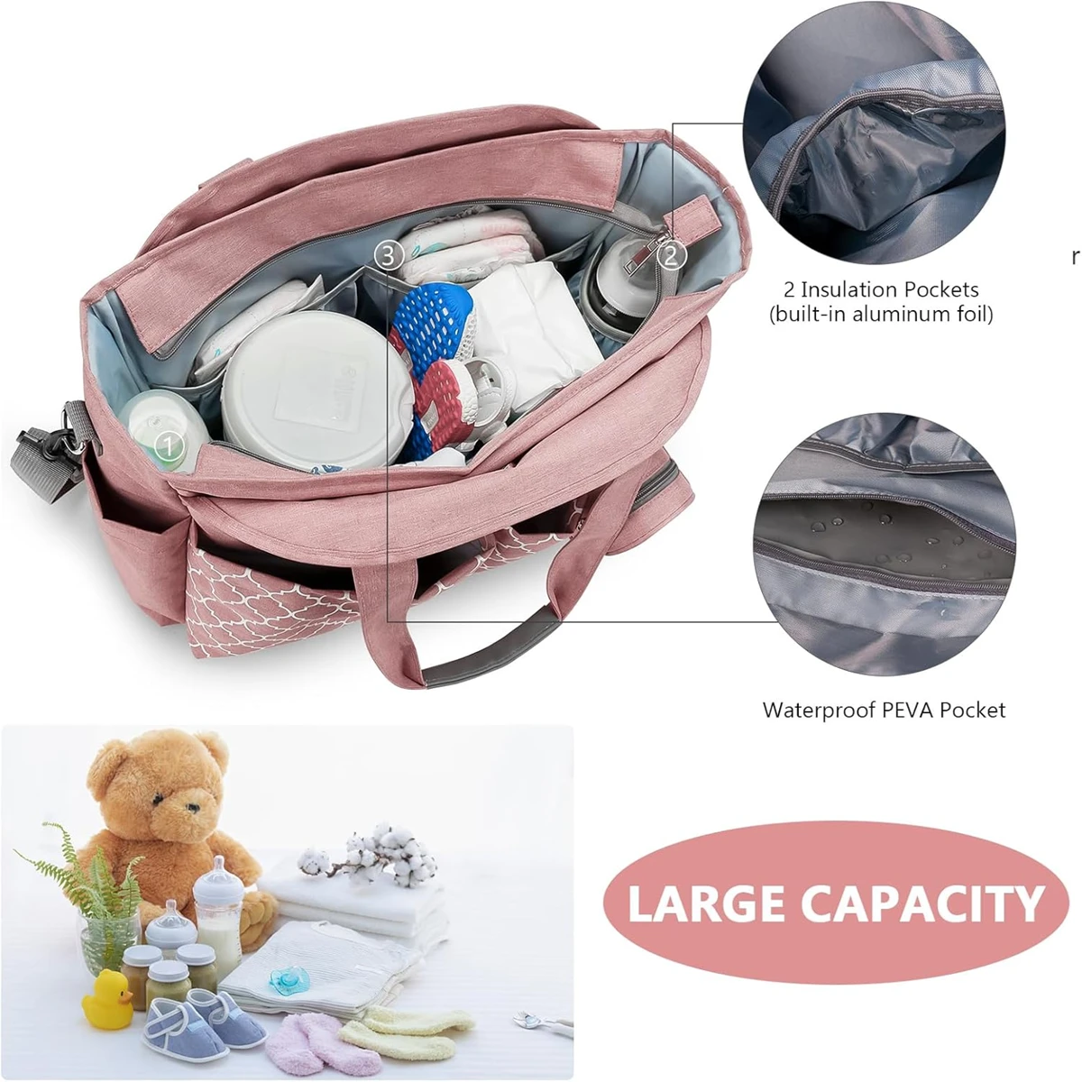 - Vielseitige Tragemöglichkeiten: Verstellbarer Schultergurt und Griffe — als Umhängetasche, Handtasche, Reisetasche, Kliniktasche oder als Organizer für den Kinderwagen verwendbar.
