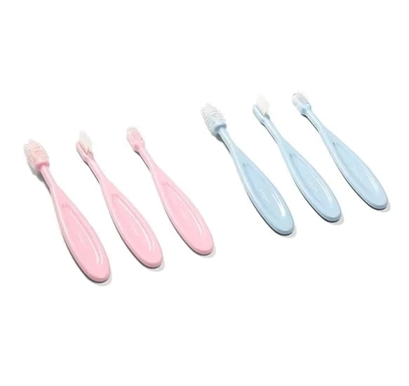 Das Set aus sanften Zahnbürsten ist unverzichtbar für die tägliche Mundhygiene Ihres Kindes. Im Set befinden sich 3 Bürsten: Die erste, aus Silikon, ist für die Massage des Zahnfleisches gedacht, für Kinder, die noch keine eigenen Zähne haben; die zweite – ebenfalls aus Silikon – ist zum Zähneputzen der ersten kleinen Zähnchen geeignet; die dritte – mit weichen Borsten – ist für ältere Kinder bestimmt. Die Zahnbürsten sind ideal, um das selbstständige Zähneputzen zu erlernen.