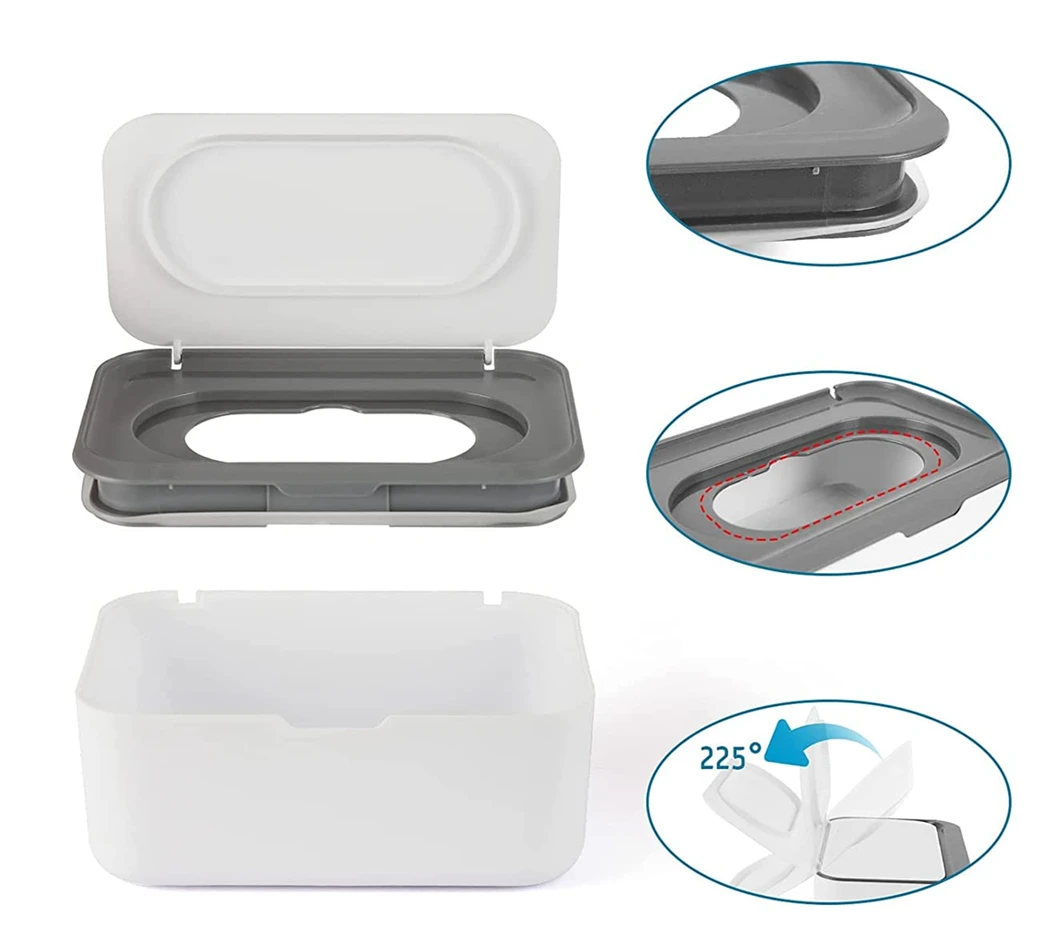 - Der verschließbare Deckel und die Silikondichtung verhindern das Austrocknen der Tücher.
