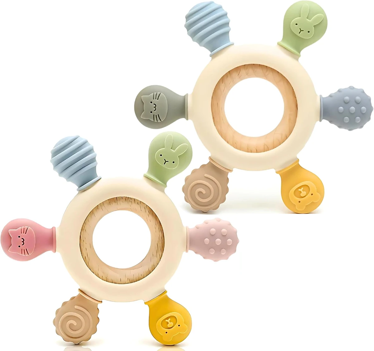 - 4 verschiedene Texturen (6 Farben) stimulieren die Sinne des Babys und massieren sanft das Zahnfleisch mit unterschiedlicher Intensität.
