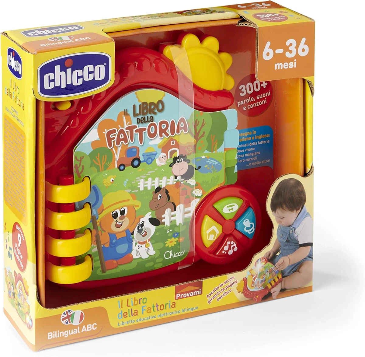 CHICCO Elektronisches Bauernhof-Bilderbuch Lernbuch ENGLISCH und ITALIENISCH