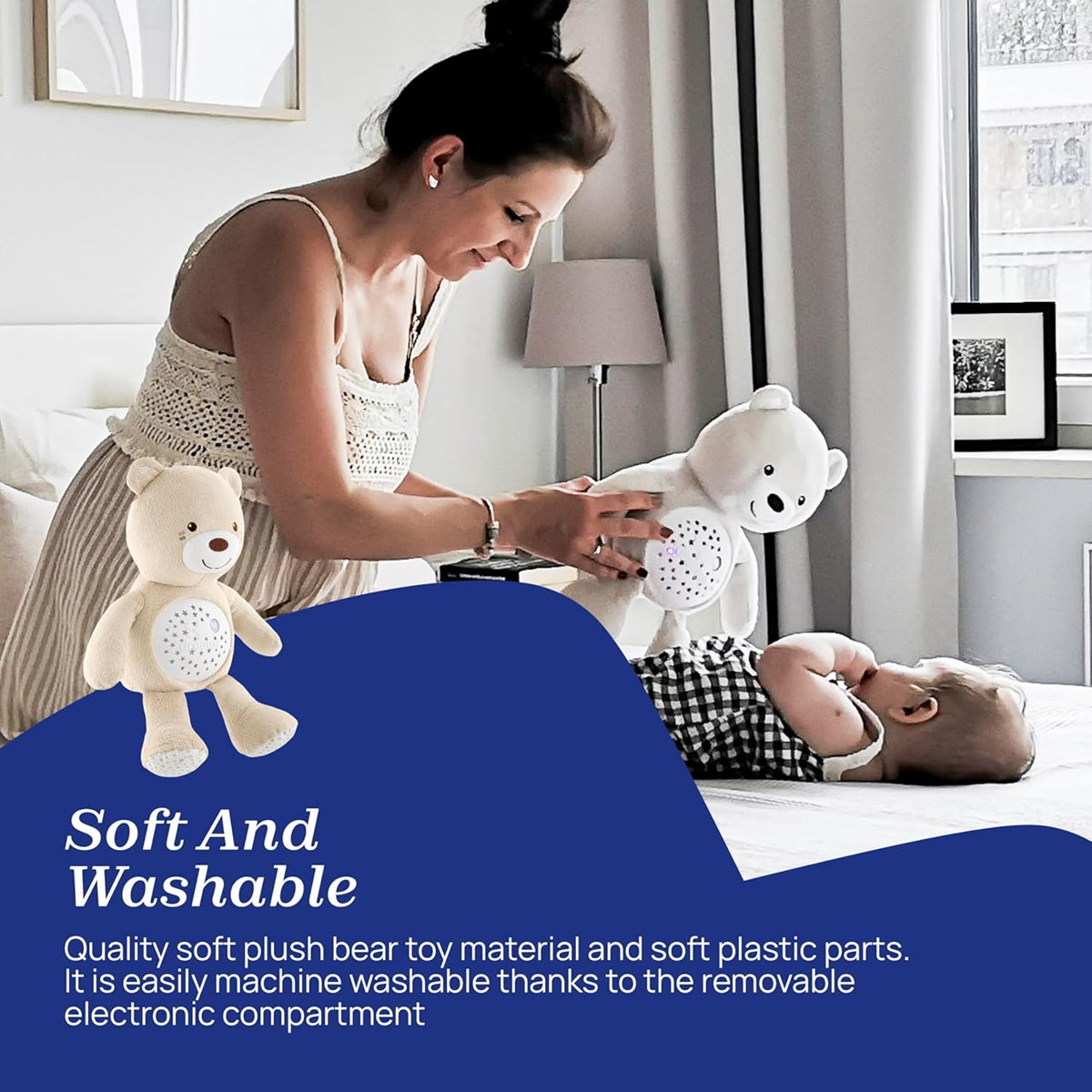 - MELODIEN: Neben der Nachtlichtfunktion für das Baby bietet der Plüschbär 30 Minuten klassische, Jazz-, Soft-Rock-, New-Age- und Naturklänge mit einer Taste zur Auswahl der Lieblingsmelodie.