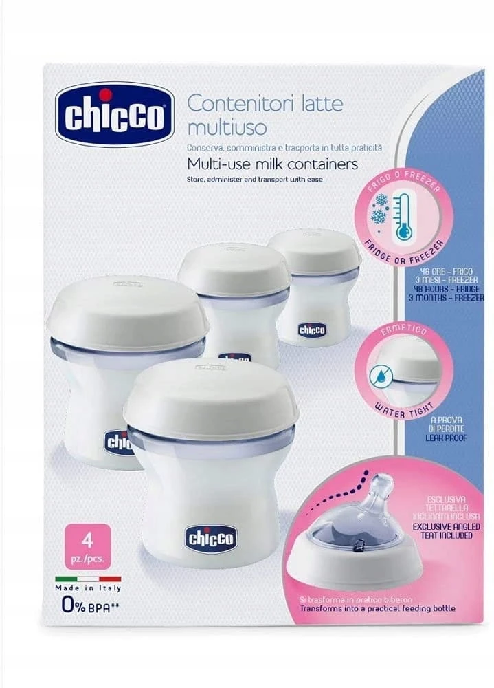 CHICCO Milchbehälter 4 x 150 ml + Sauger mit Deckel