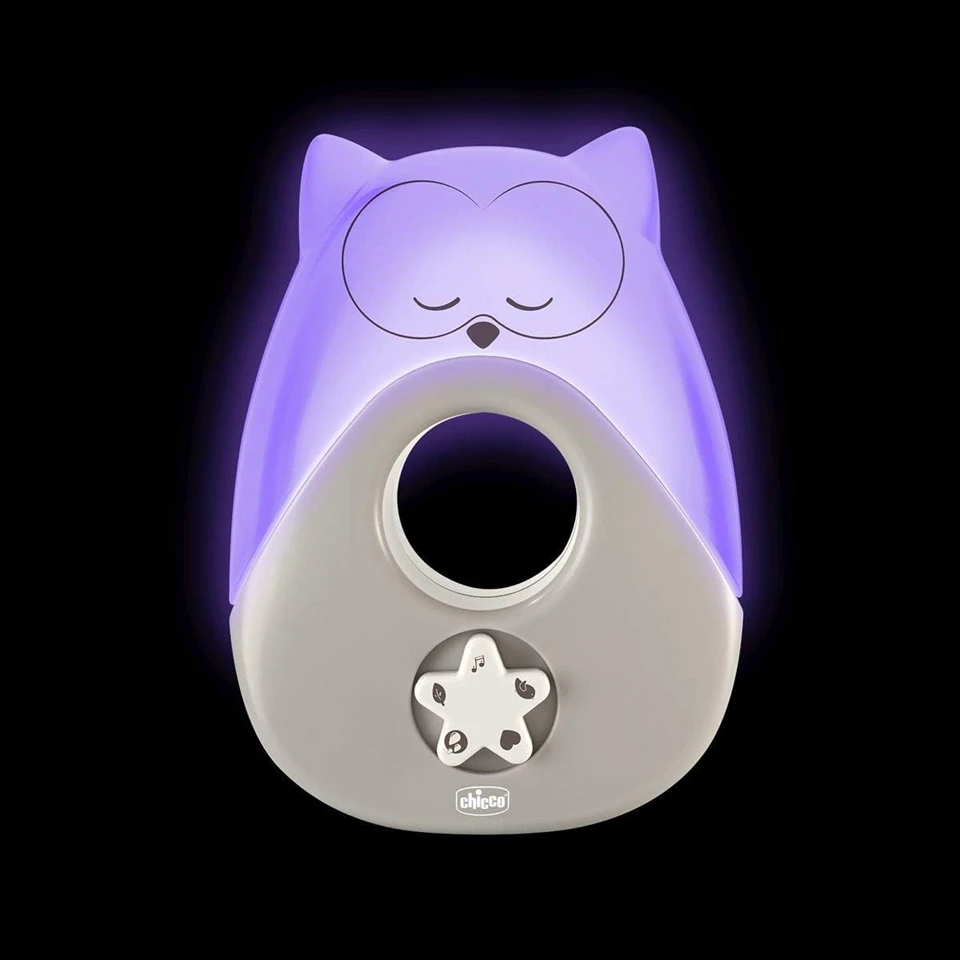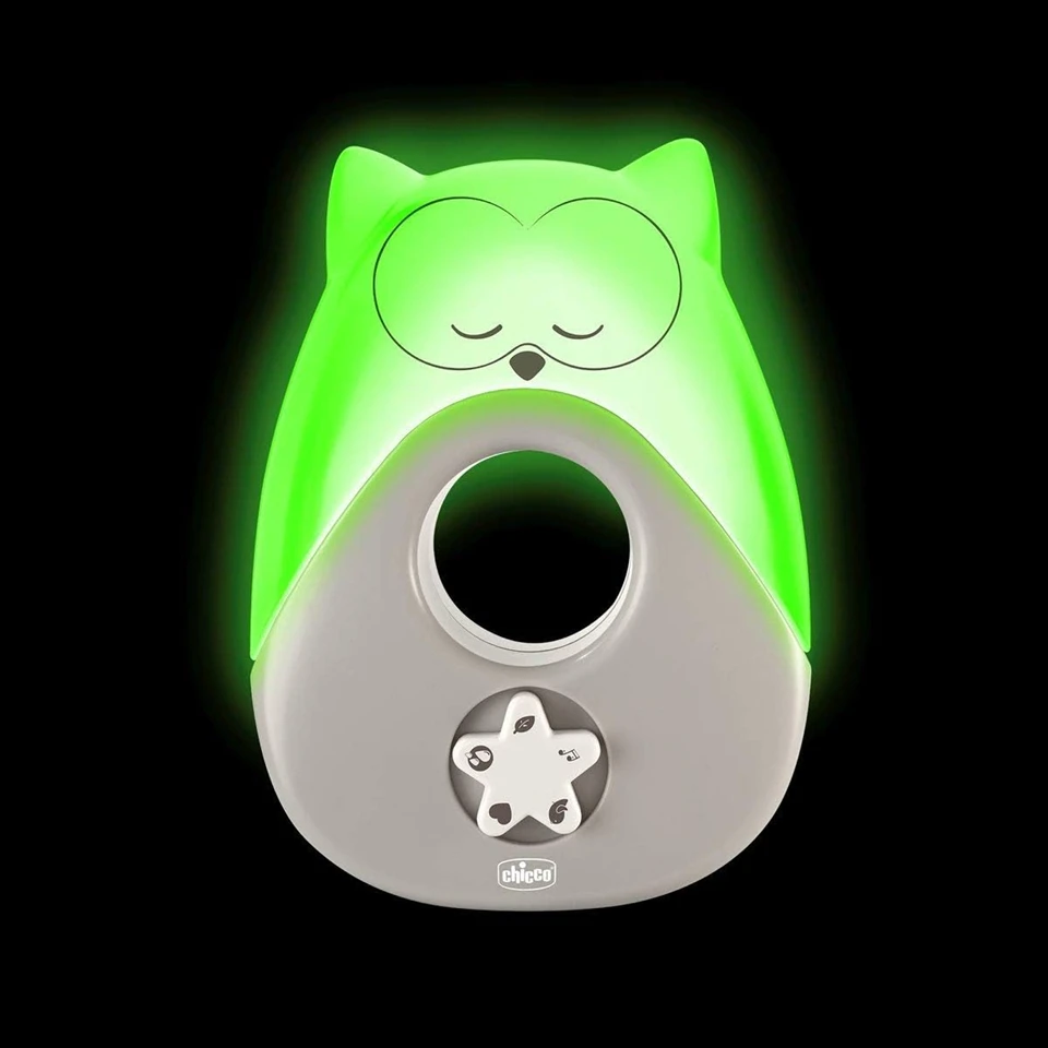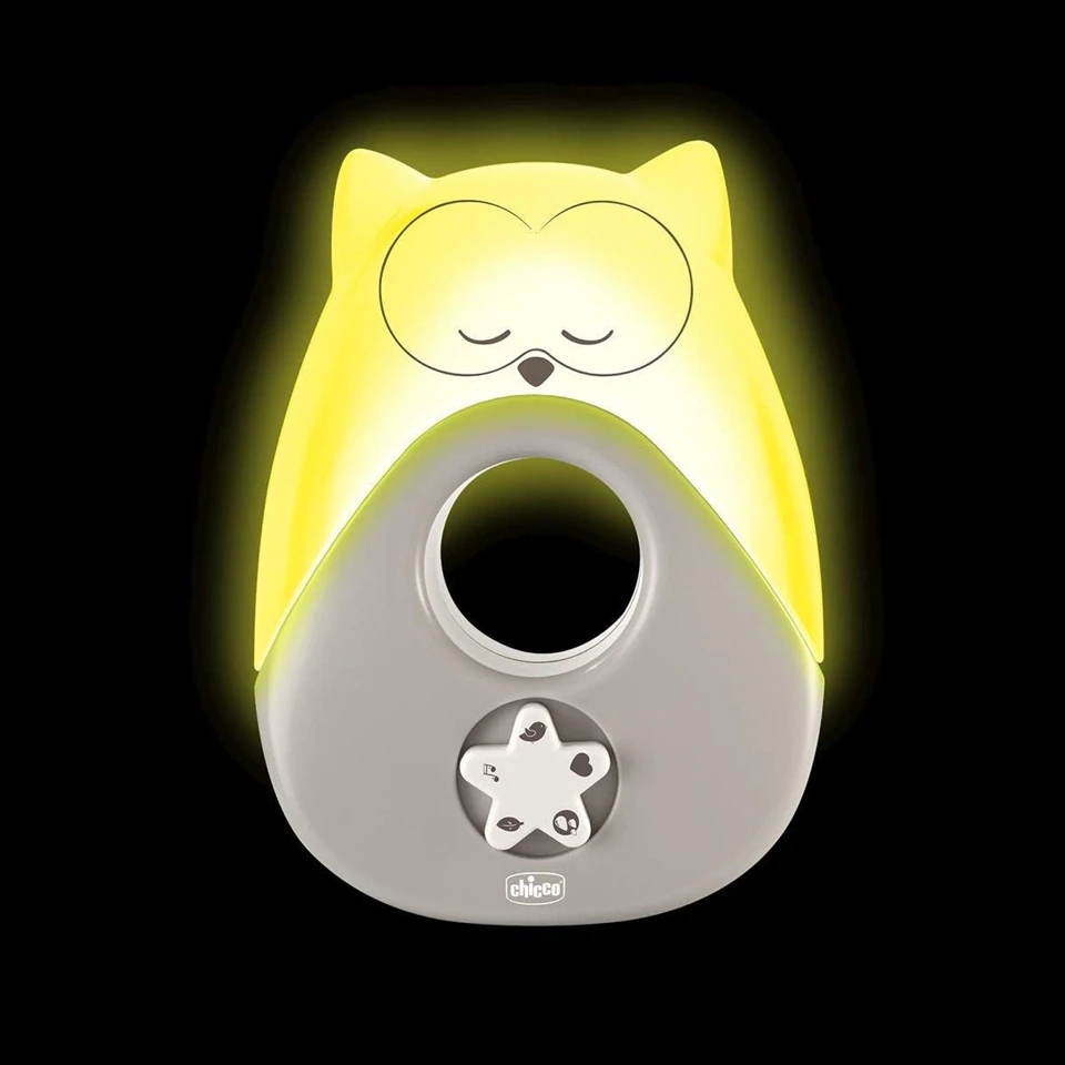 CHICCO Sweet Lights Nachtlicht mit Melodien und Geräuschen EULE 13,5 x 18 cm
