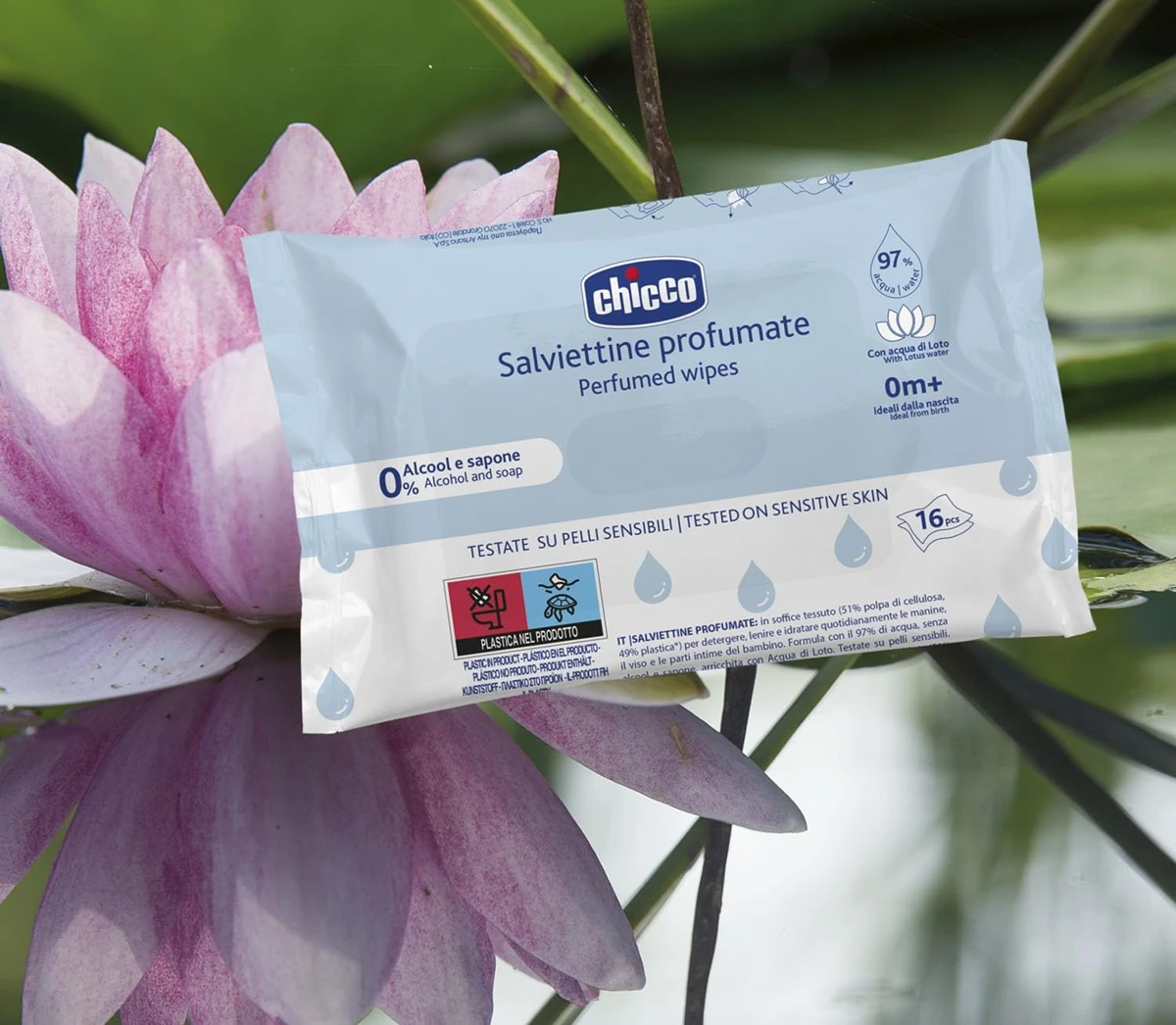 CHICCO duftende Feuchttücher mit Lotusblütenextrakt x16