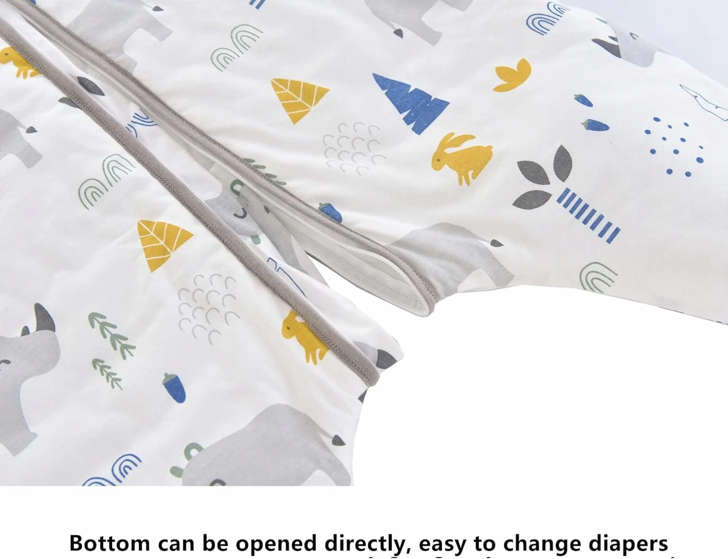 - Schlafsäcke mit Beinen – erleichtern dem Kind die Bewegung und ermöglichen das Schlafen in der Froschposition. Verlängertes Design der Beine zum Umschlagen. Decken Sie die Füße des Kindes beim Schlafen zu oder lassen Sie sie beim Spielen frei. Unsere Patentnummer für das Design: 008548143-0001.