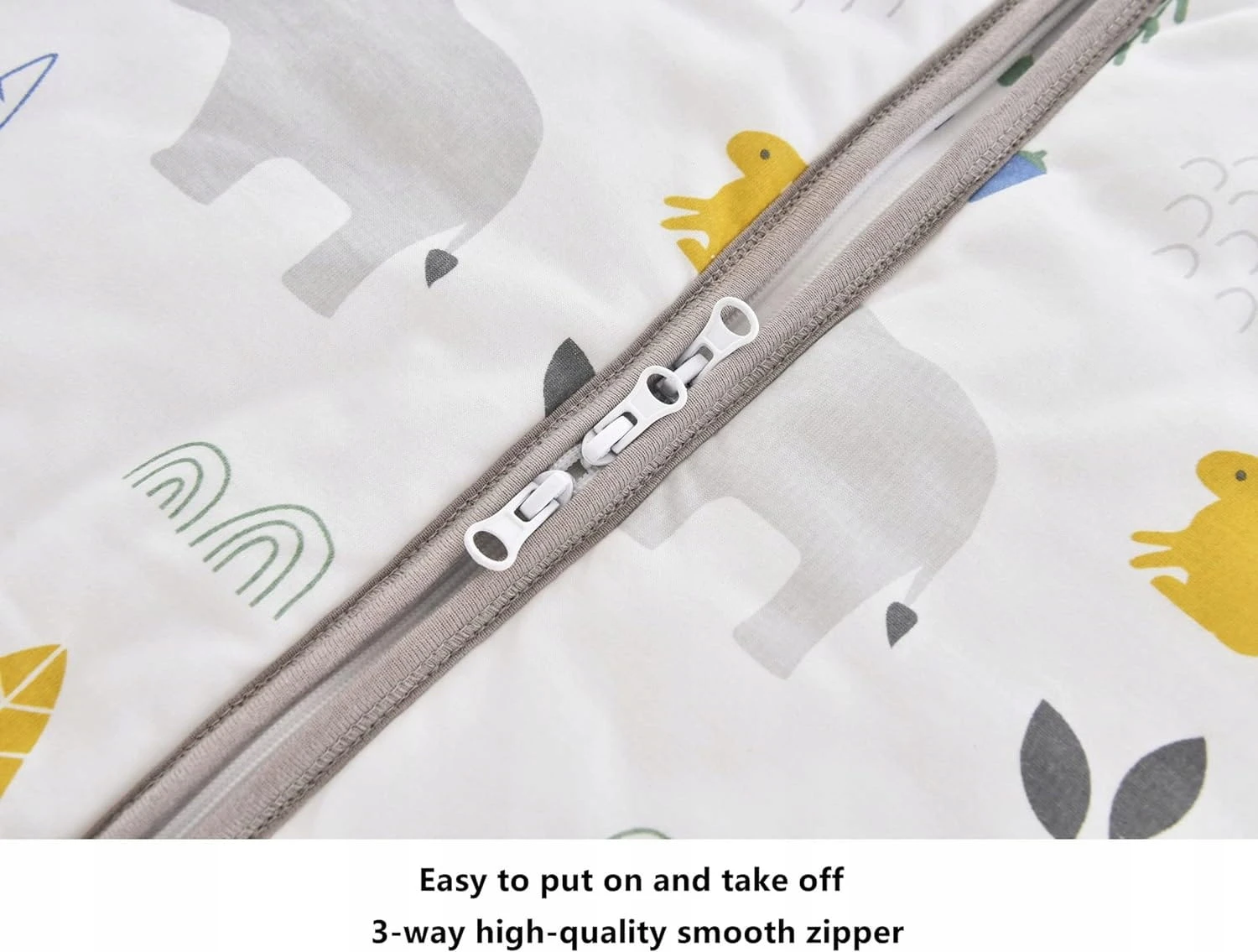 - Sehr praktisch: Unsere Sommerschlafsäcke lassen sich schnell und einfach anziehen. Dank des durchdachten Komfortreißverschlusses mit 3 Zippern kann die Windel problemlos gewechselt werden. Zusätzlich sorgt unsere kleine Stofflasche am oberen Ende des Reißverschlusses für Kinnschutz. Mit weichem Ausschnitt, gepolstertem Rand und komfortablem, sicherem Reißverschluss bieten die Schlafsäcke ein hohes Maß an Sicherheit und Komfort.