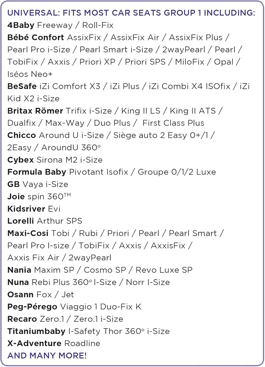 - geeignet für Kindersitze der Gruppe 1 (9-18kg)
