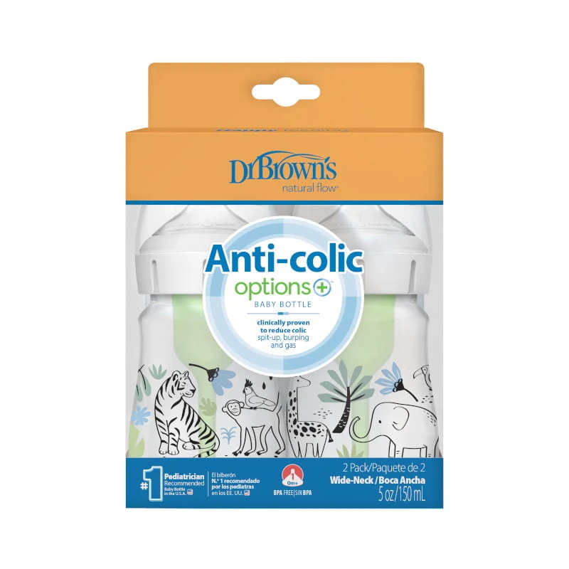Die neuesten Dr. Brown's Options+ Flaschen aus der Kollektion WALD UND DSCHUNGEL geben Eltern die Möglichkeit zu wählen, wie sie ihr Baby füttern möchten. Das patentierte Belüftungssystem ermöglicht das Füttern mit oder ohne das Dr. Brown's Belüftungssystem. Die Flasche verfügt über eine neue Saugerform, die der Brust der Mutter ähnelt, sowie über ein einzigartiges Design: Wald und Dschungel. Während des Fütterns empfehlen wir die Verwendung des Dr. Brown's Belüftungssystems, damit Ihr Baby alle gesundheitlichen Vorteile genießen kann: - Das Belüftungssystem verhindert die Bildung von Luftblasen in der Nahrung, was Koliken, Aufstoßen und Gasansammlungen vorbeugt; - Das patentierte Belüftungssystem reduziert effektiv die Oxidation von Muttermilch und Säuglingsnahrung, was die Haltbarkeit wichtiger Nährstoffe wie Vitamin C, A und E sowie Lipiden fördert (basierend auf einer Universitätsstudie); - Das vollständige Belüftungssystem der Flasche ermöglicht das Füttern ohne Vakuumbildung, ähnlich wie beim Stillen. Einige Eltern finden, dass das Entfernen des Belüftungssystems, wenn das Baby älter und weiter entwickelt ist, eine zusätzliche Fütterungsoption mit der Dr. Brown's Flasche bietet: - Es ermöglicht ein Füttern ähnlich wie bei den meisten Flaschen mit Belüftungssystem im Sauger; - Das Belüftungssystem im Sauger sorgt für einen angemessenen Durchfluss. SET ENTHÄLT: - 2x 150ml Weithalsflaschen OPTIONS+; - zweiteiliges Belüftungssystem; - Weithals-Sauger, Stufe 1; - Reinigungsbürste für das Belüftungssystem. Zur Verwendung mit oder ohne Belüftungssystem.
