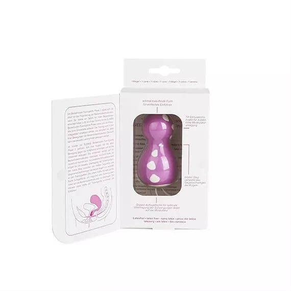 - Passive Stimulation der Beckenbodenmuskulatur durch Vibrationskugeln im Inneren des Vaginalkegels. Für langfristiges ergänzendes Training mit bereits vortrainiertem Beckenboden, um Muskelschwäche vorzubeugen.
