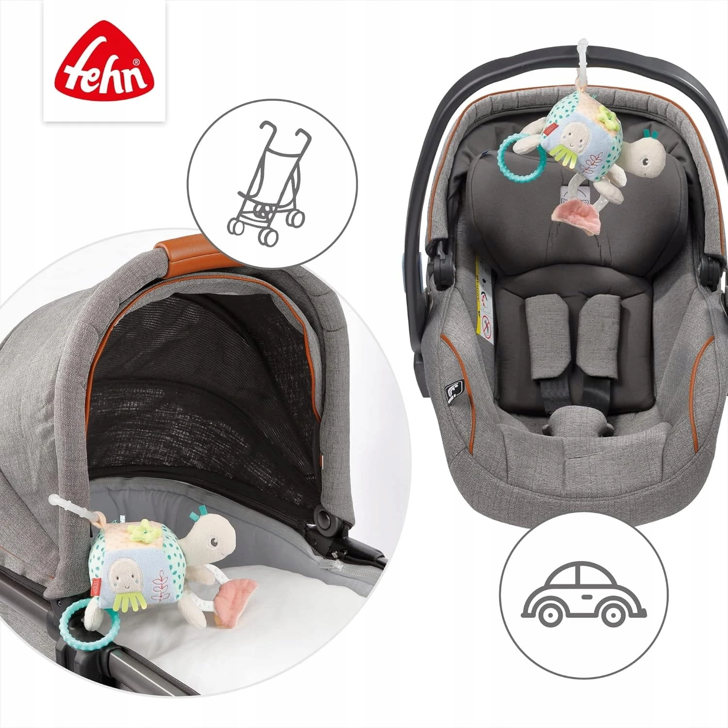 - Praktisch und pflegeleicht – dank praktischem C-Ring kann das Spielzeug einfach am Kindersitz, Spielbogen, Kinderwagen, Buggy oder Bett befestigt werden. Leicht von Hand waschbar