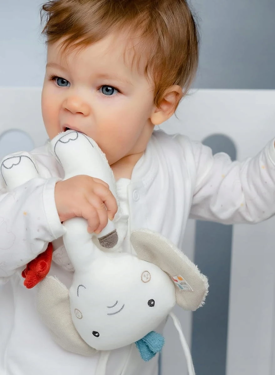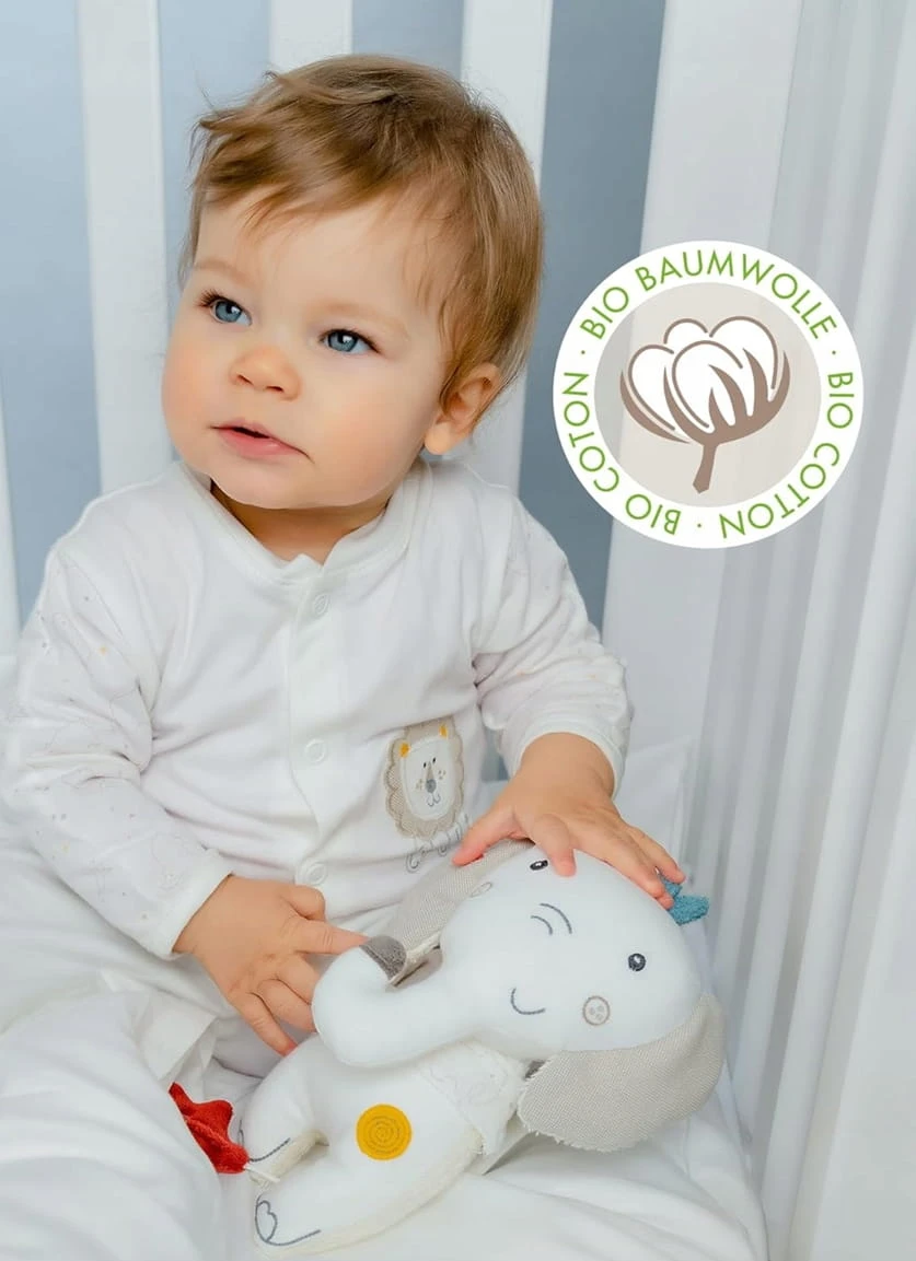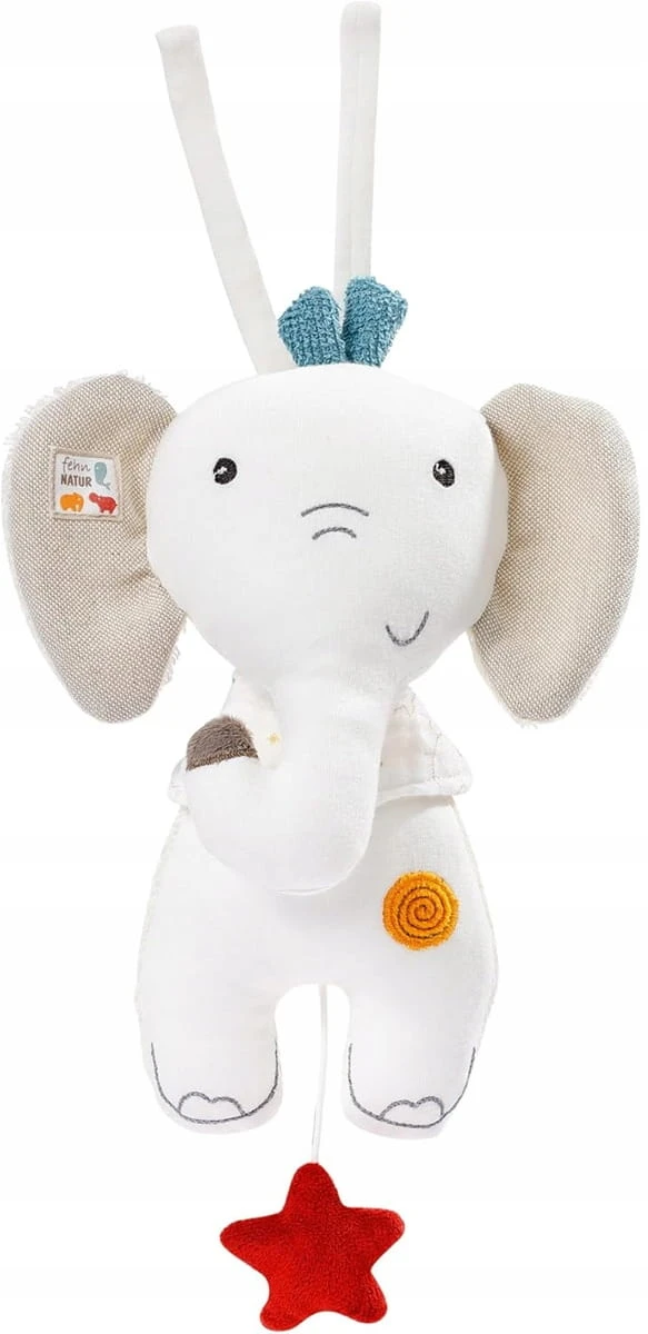 FEHN Baumwoll-Spieluhr-Anhänger für Babybett, Kinderwagen ELEFANT 20 cm