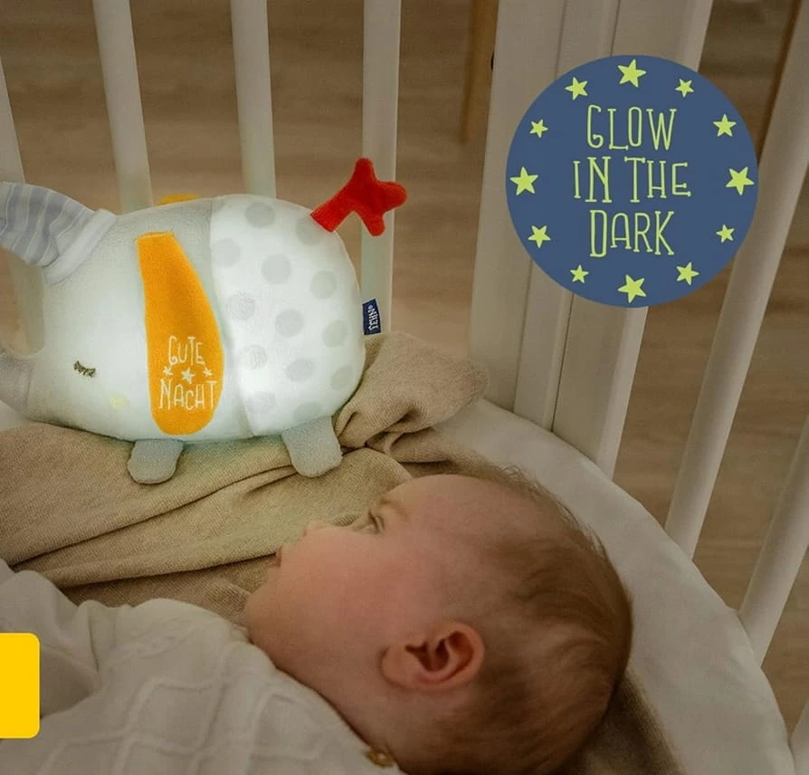 FEHN Schmusetuch mit Nachtlicht, 4 Farben und leuchtender Stickerei ELEFANT
