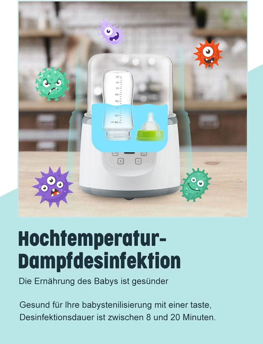 - ? 6-in-1 Flaschenwärmer für Babys: 6 Funktionen wurden speziell entwickelt, um alle Ihre Anforderungen zu erfüllen. Der multifunktionale Flaschenwärmer für Babys dient zum Erwärmen von Milch/Milchnahrung, Warmhalten, Dampfsterilisation, Auftauen von Lebensmitteln und Kochen von Eiern.
