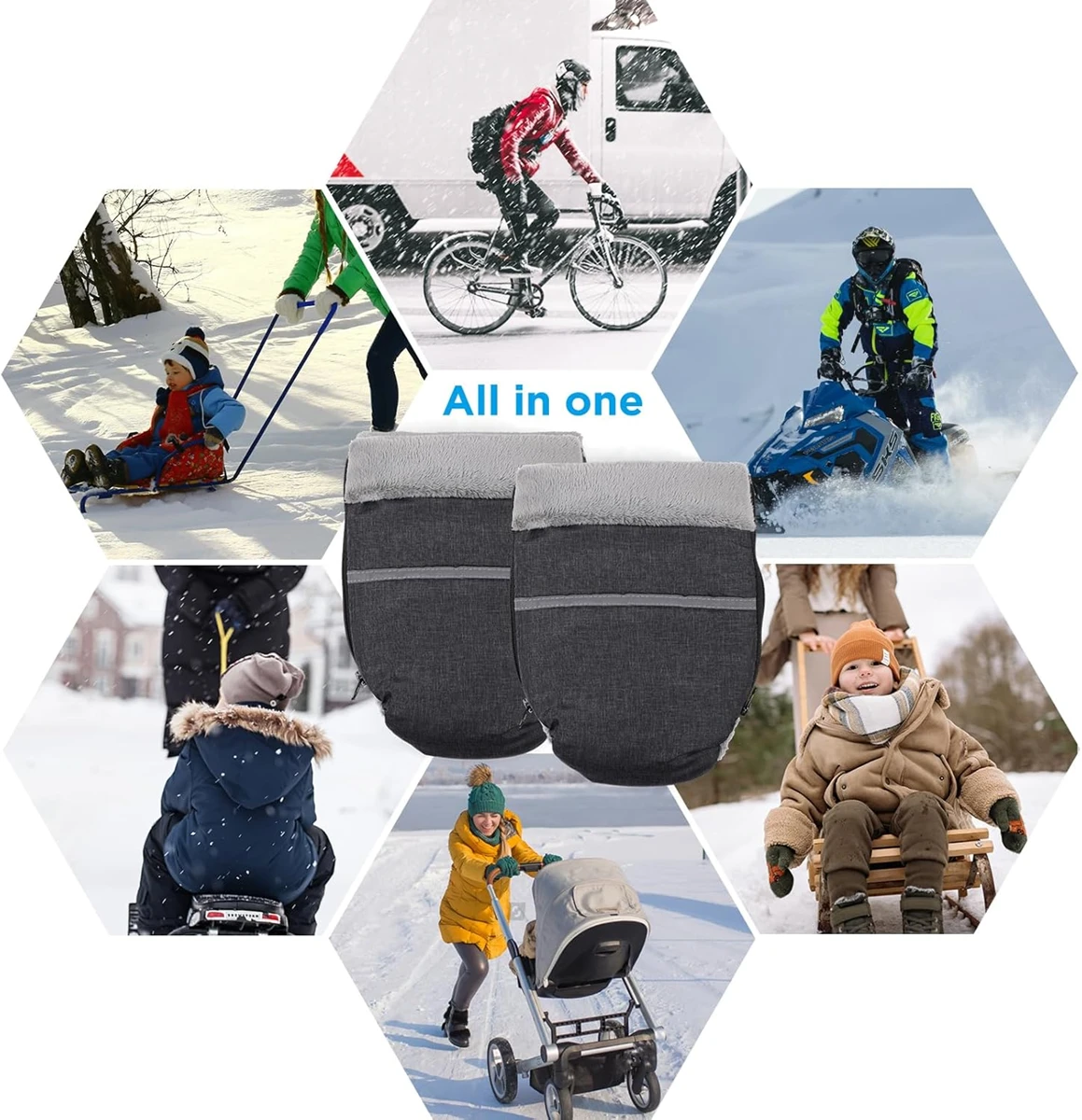 - Unabhängiges Handschuh-Design: Reißverschluss-Design, verbesserte Basis gegenüber Knopf-Handschuh, winddichter und wärmer, lässt sich einfach am Kinderwagenlenker befestigen.