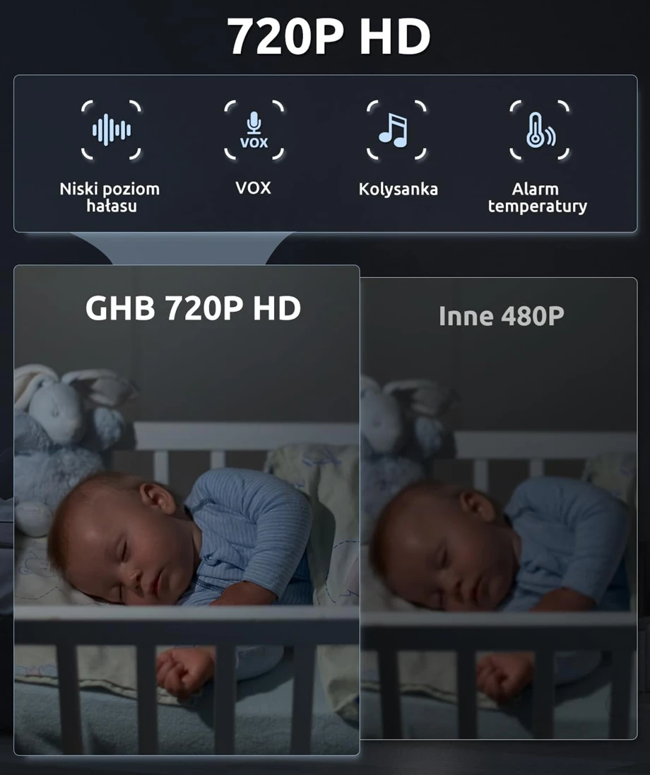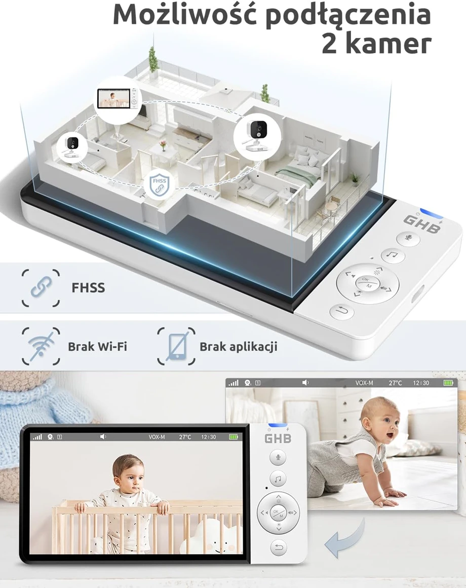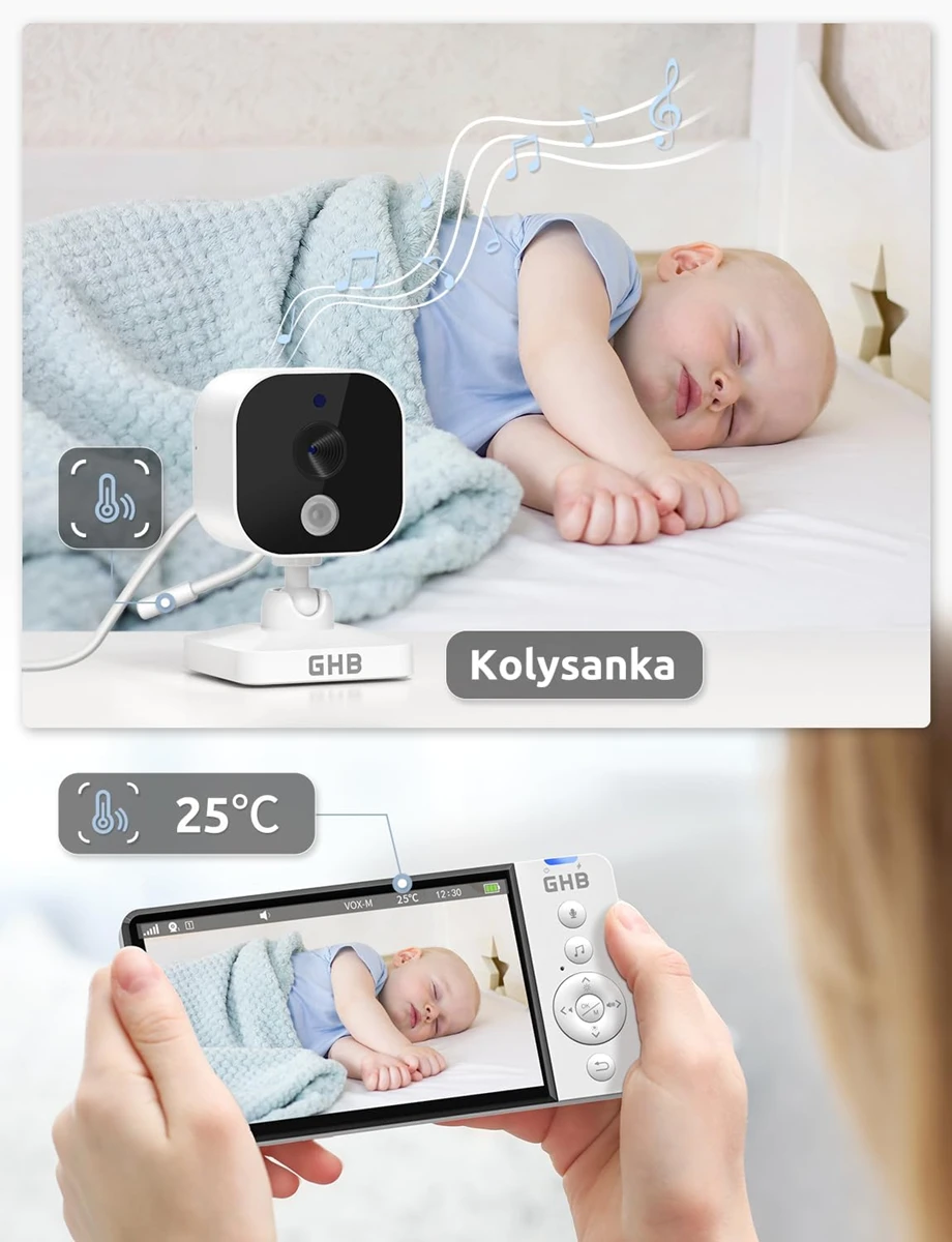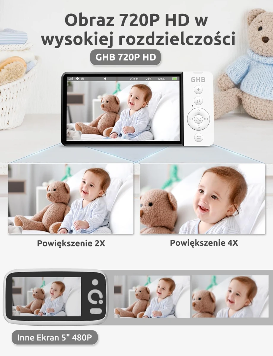 5" IPS 720p Video-Babyphone — FHSS 2,4 GHz, Nachtsicht, VOX, 2-Wege-Kommunikation