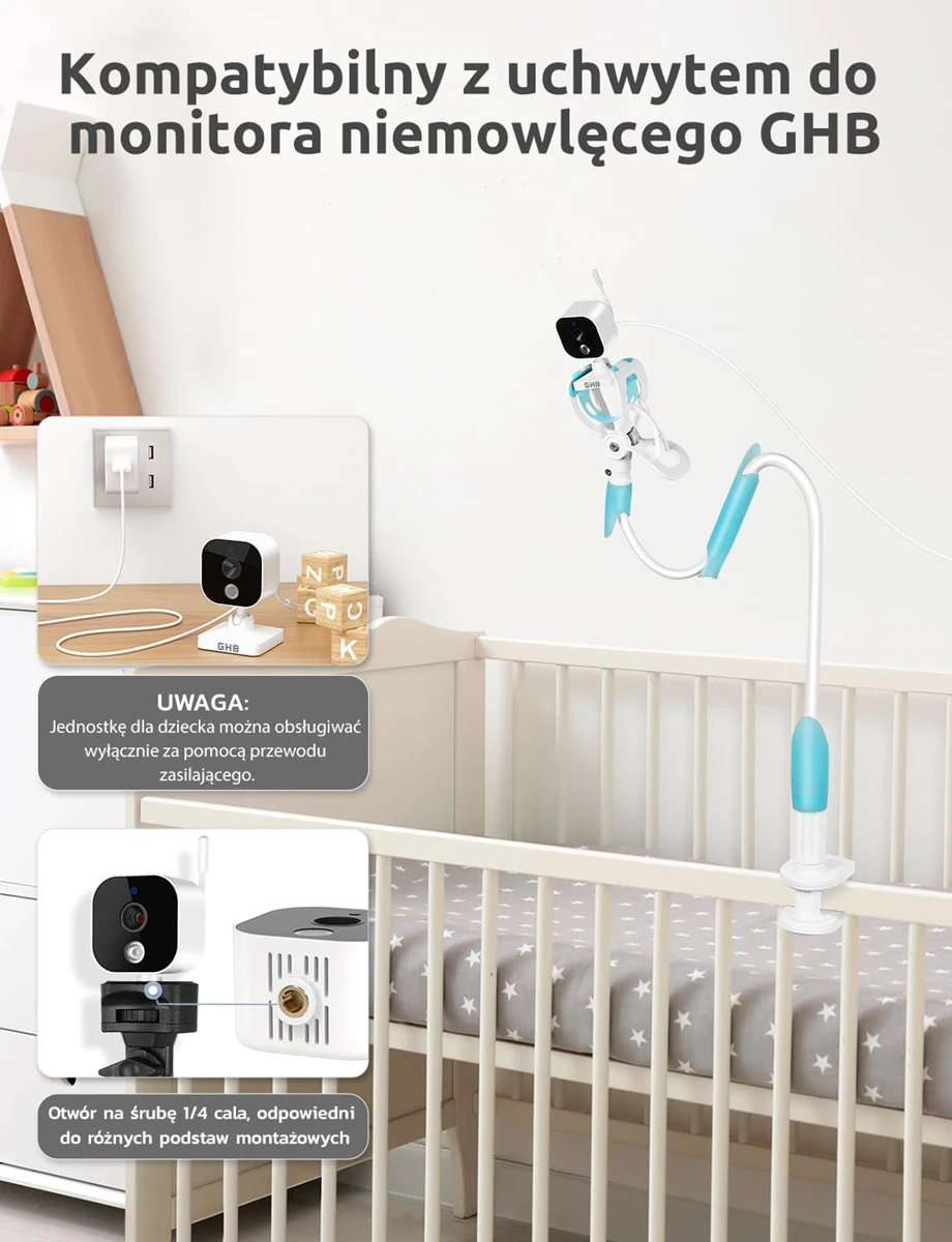 Platzieren Sie die Kamera höher und leicht geneigt, um das Bettchen und die Umgebung zu erfassen.