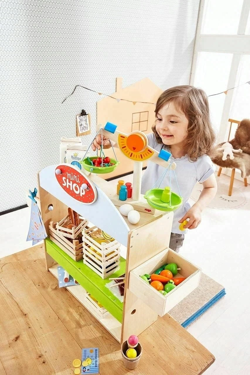 HABA Holz-Kaufladenwaage mit Gewichten und Gewichtsstücken