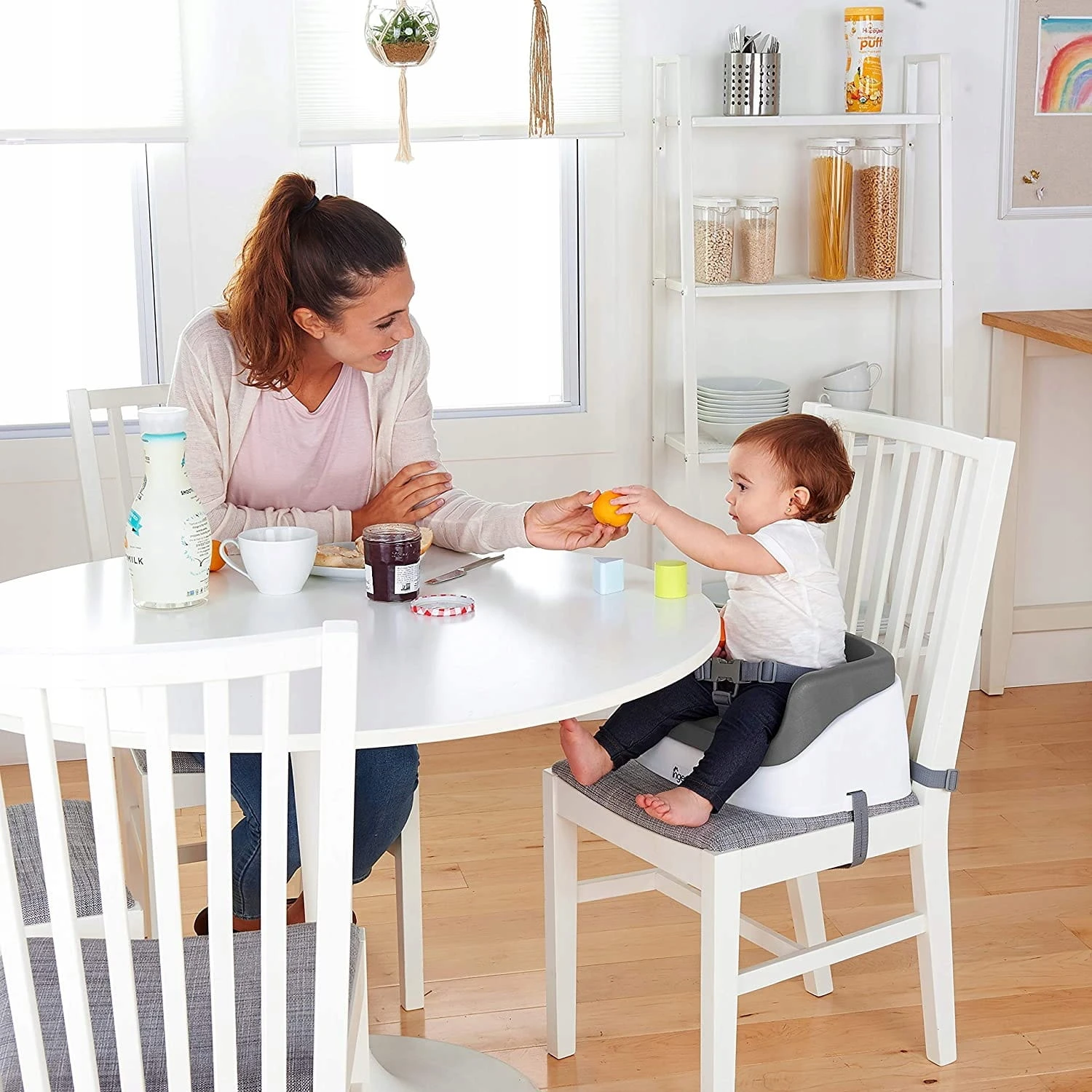 Der Ingenuity Sitz wurde speziell für wachsende Kleinkinder entwickelt. Das Produkt vereint modernes Design mit Funktionalität. Dank der Sicherheitsgurte lässt sich der Sitz einfach und schnell an einem herkömmlichen Esszimmerstuhl befestigen, sodass das Kind problemlos den Tisch erreichen kann.
