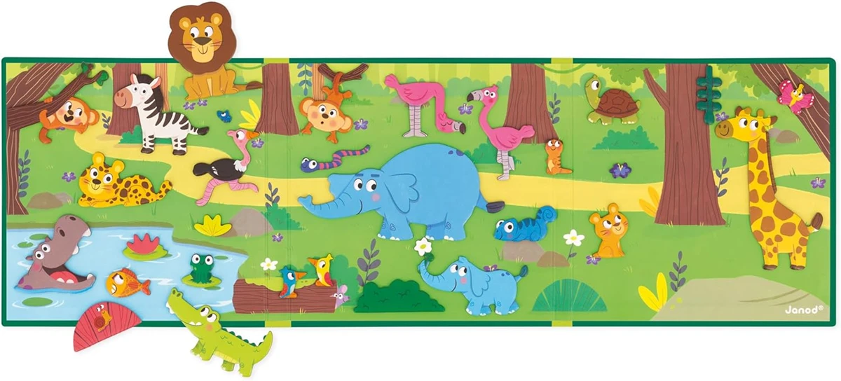 - MERKMALE: Magnetset mit 1 großem Druck und 30 Tiermagneten – Dickes, stabiles Buch aus 3-teiligem FSC-zertifiziertem Karton – Maße des geöffneten Buches: 55,5 x 18 cm – Janod-Spielzeug für Kinder von 3-8 Jahren – Ideal zum Wachsen und Spielen