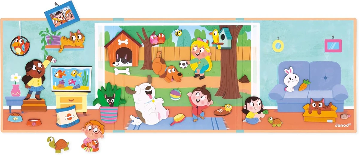 - MAGNETISCHES BUCH ZUM GESTALTEN: Mit 30 Tiermagneten und dekorativen Elementen zum Platzieren auf der illustrierten Hauskulisse lernt das Kind, sich um Tiere zu kümmern, während es Spaß hat und ein lebendiges Zuhause erschafft.