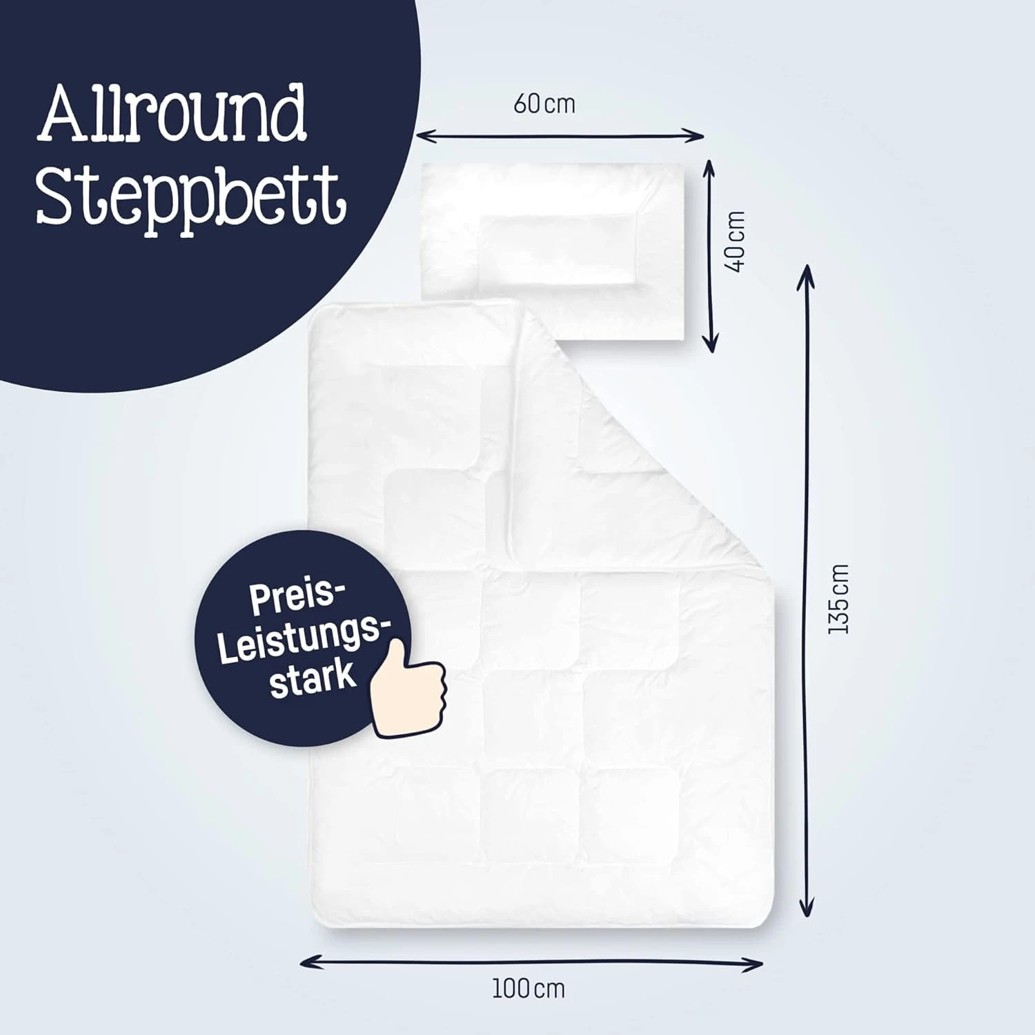 - Maße der Bettdecke 100x135, Kissen 40x60