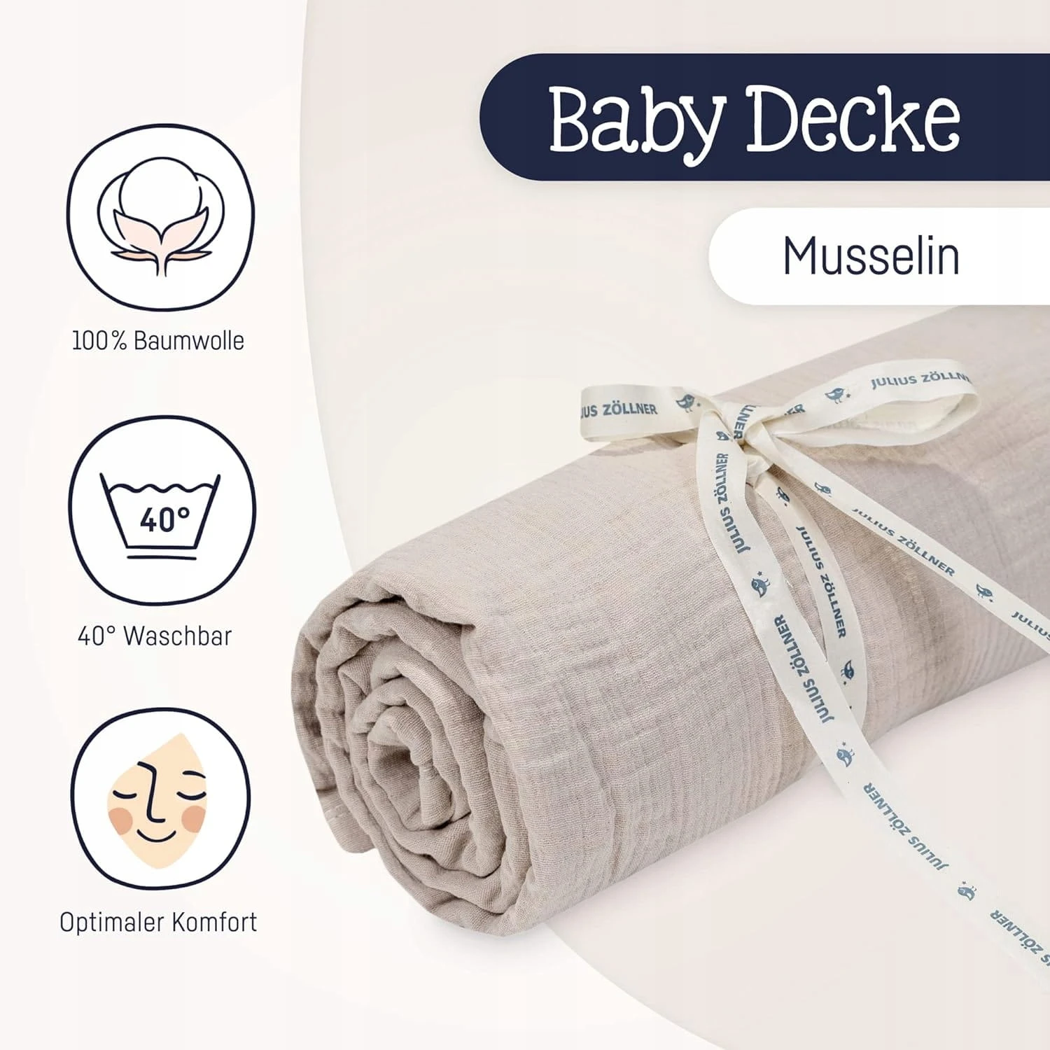 - Angenehm weich und kuschelig, hergestellt aus 100% Musselin-Baumwolle