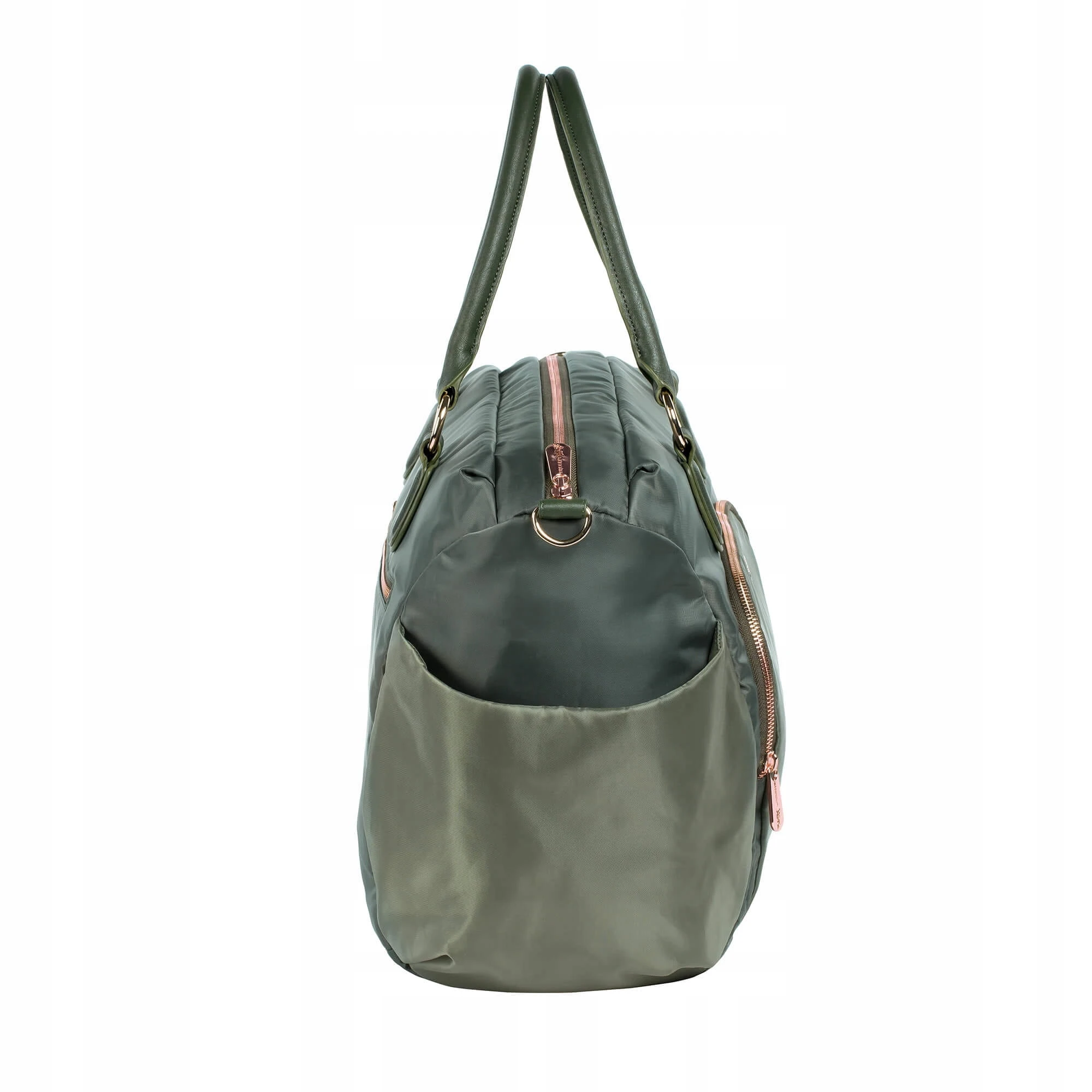 Die LASSIG Wickeltasche aus der Gold Label Kollektion besteht aus sportlichem Nylonmaterial, verziert mit glänzenden, metallischen Details in Ice-Gold und schwarzem Metallic-Silber. Praktische Außentaschen eignen sich perfekt zur Aufbewahrung einer Wasserflasche oder von Gegenständen, die schnell griffbereit sein sollen. Ein weiteres kleines Frontfach mit Reißverschluss bietet zusätzlichen Stauraum.