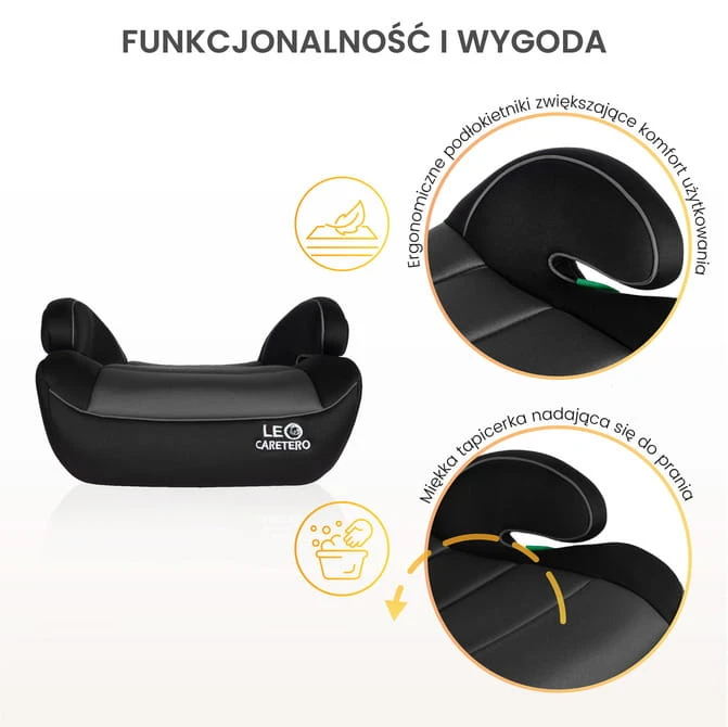 Leo ist eine Sitzerhöhung für ältere Kinder, die nicht mehr in einen Kindersitz passen, aber noch keine 150 cm groß sind. Durch die Verwendung der Sitzerhöhung liegt der Fahrzeuggurt sicher am Körper des Kindes an. Leo kann in Fahrzeugen mit 3-Punkt-Sicherheitsgurten installiert werden, ohne ISOFIX-System. Der Booster Leo ist leicht – er wiegt nur 1,7 kg – was die Handhabung erleichtert.