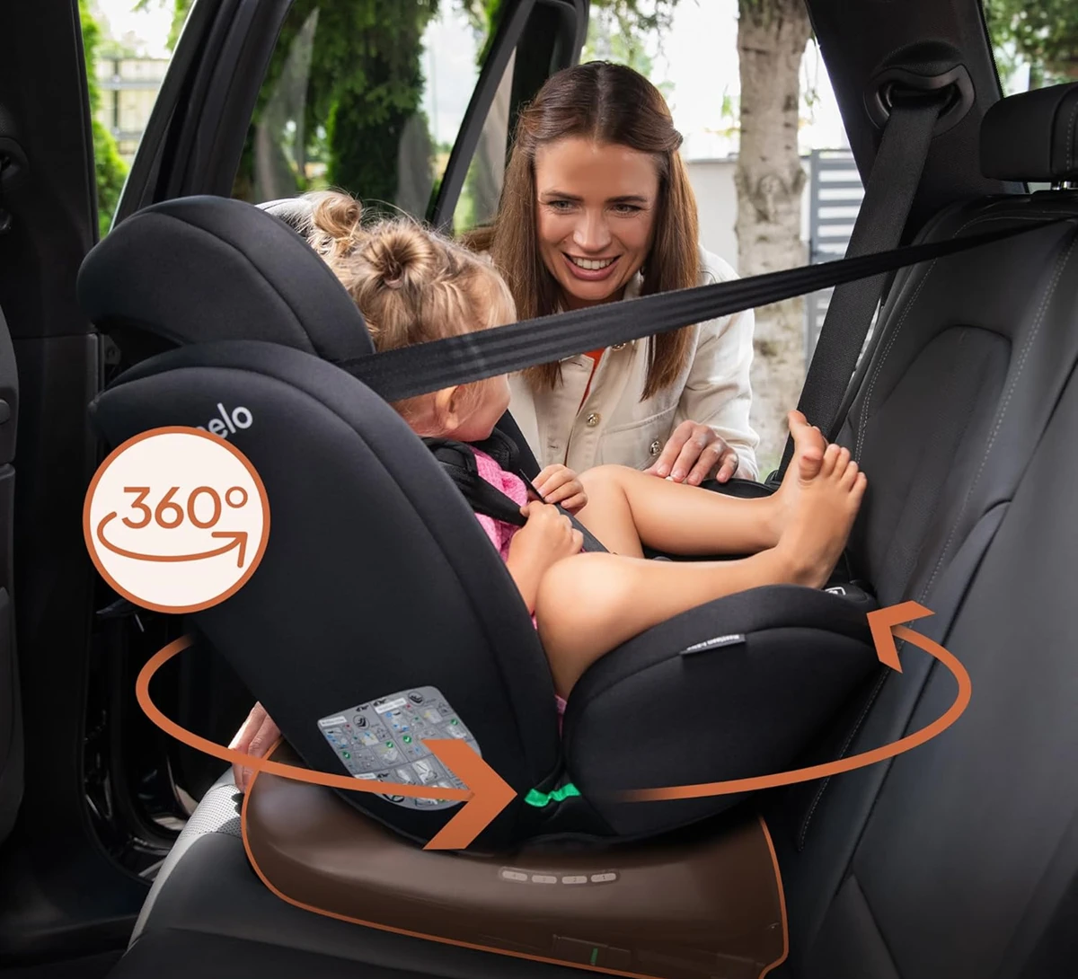 - VOLLSTÄNDIGE VERSTELLBARKEIT: Die Rückenlehne des drehbaren Sitzes kann in 4 Neigungsstufen nach vorne eingestellt werden. 7-fache Kopfstützenverstellung und integrierte Gurte ermöglichen eine einfache Anpassung des Sitzes an das wachsende Kind. Der Mechanismus zur Einstellung der inneren Gurte ermöglicht ein einfaches Spannen mit nur einem Handgriff.