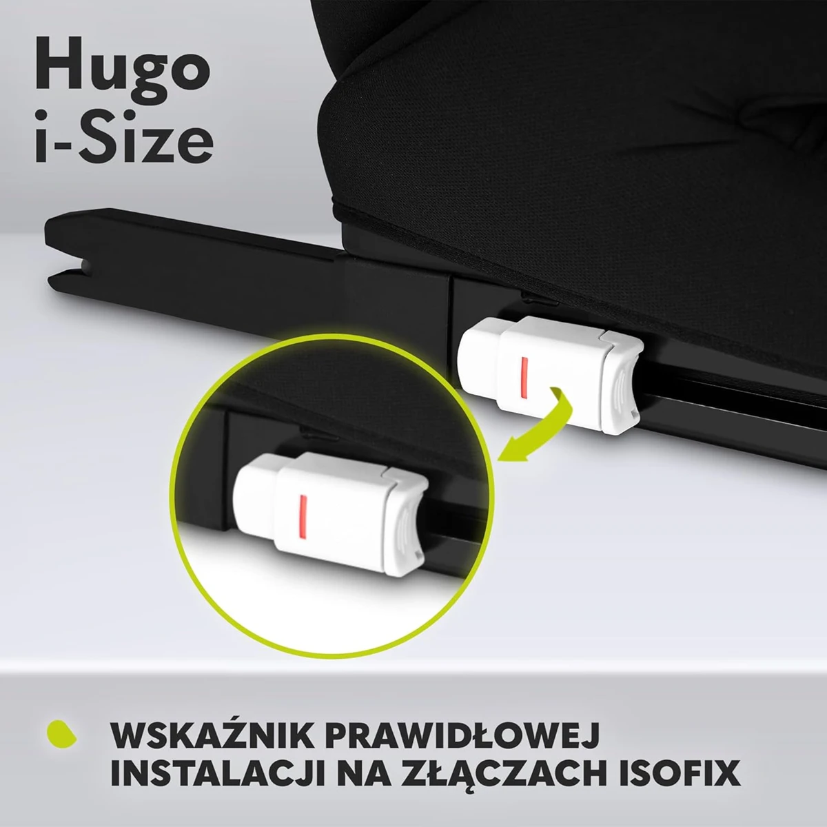 - ISOFIX ODER AUTOGURTE: Der Autositz Hugo i-Size wird in Fahrtrichtung montiert. ISOFIX sorgt für eine schnelle und sichere Montage und reduziert die Kräfte bei plötzlichem Bremsen erheblich. Es besteht auch die Möglichkeit, den Sitz mit Autogurten zu befestigen. Der Sitz verfügt zudem über eine Anzeige für die korrekte Installation an den ISOFIX-Anschlüssen