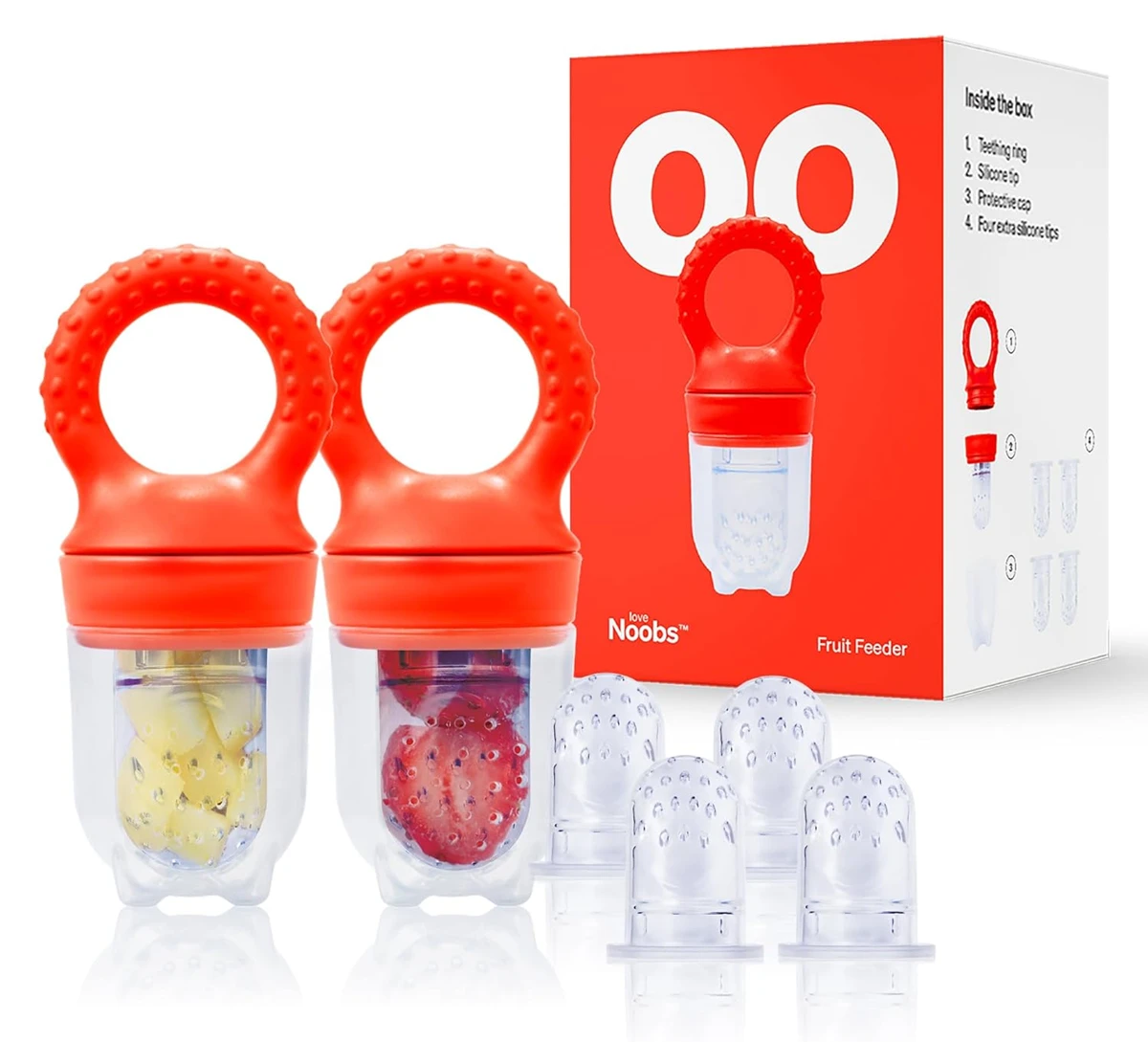 LOVE NOOBS Fruchtbeißring mit Fruchtaufsatz für Babys ab 3 Monaten, 2 Stück, 6 Sauger