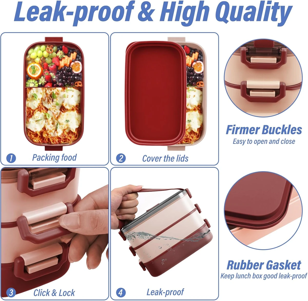 - Ausgezeichnetes auslaufsicheres Design: Die Lunchbox mit Trennwand ist mit einer guten Abdichtung konzipiert. Die Deckel der Bento Box haben einen dicken Silikonring. Sie ist mit 6 verstärkten, langlebigen Verschlüssen und 2 Stück auslaufsicherer Trennschicht ausgestattet. Die robuste Silikonschicht in der oberen und unteren Kammer sorgt für Dichtheit, verhindert perfekt das Auslaufen von Lebensmitteln und Saucen und hält Taschen sauber.