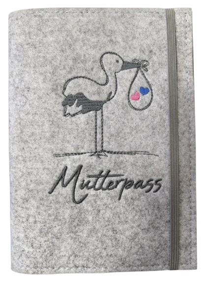 LUXDAG Filzhülle für Mutterpass STORCH 14 x 19,5 cm