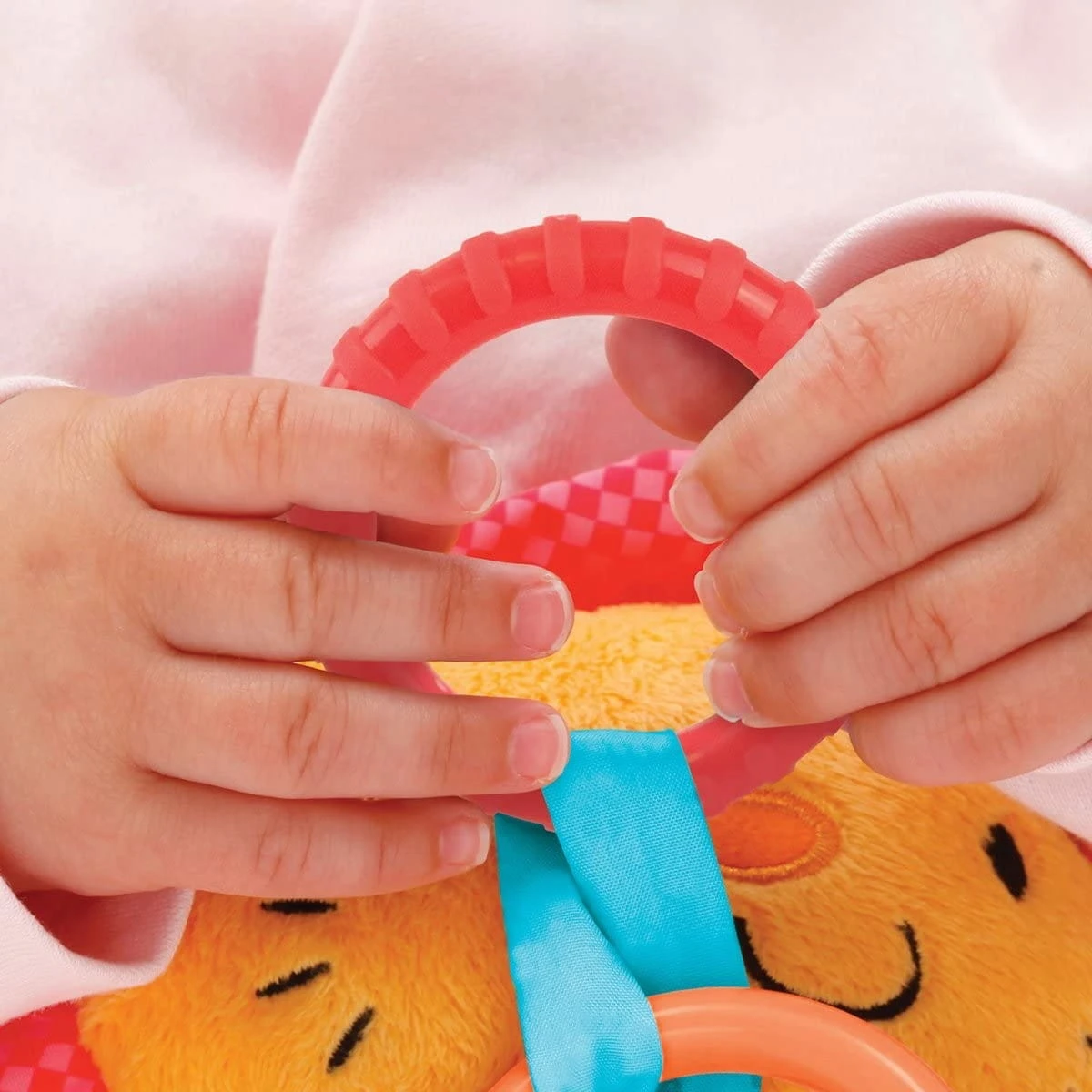 - 2 Beißringe, knetbare Mähne und eine Löwennase mit Geräuschfunktion.