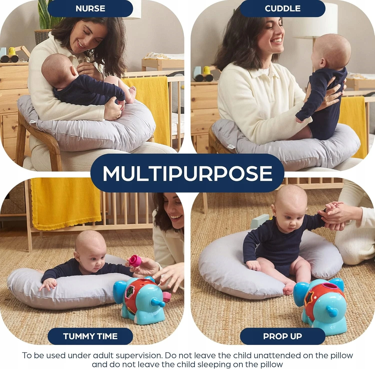 - Für die ersten Schritte: Unsere Stillkissen können auch ein nützliches Hilfsmittel sein, um das Gleichgewicht Ihres Kindes zu unterstützen. Legen Sie das Stillkissen unter Ihr Kind, um plötzliche Stürze bei den ersten Schritten zu vermeiden.