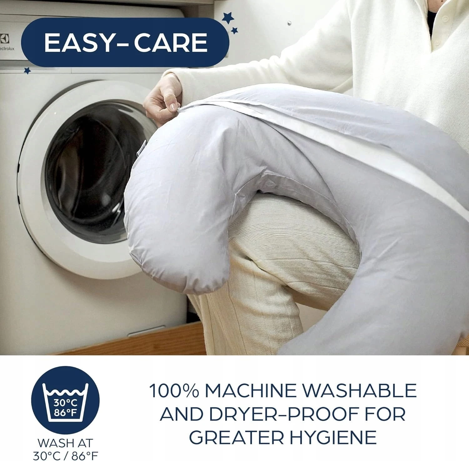 - Pflegeleicht: Dieses Schwangerschaftskissen ist maschinenwaschbar und trocknergeeignet, was für mehr Hygiene sorgt. Der weiche Baumwollbezug und die strapazierfähige Polyesterfüllung behalten garantiert ihre Form und Weichheit, auch bei häufiger Nutzung.