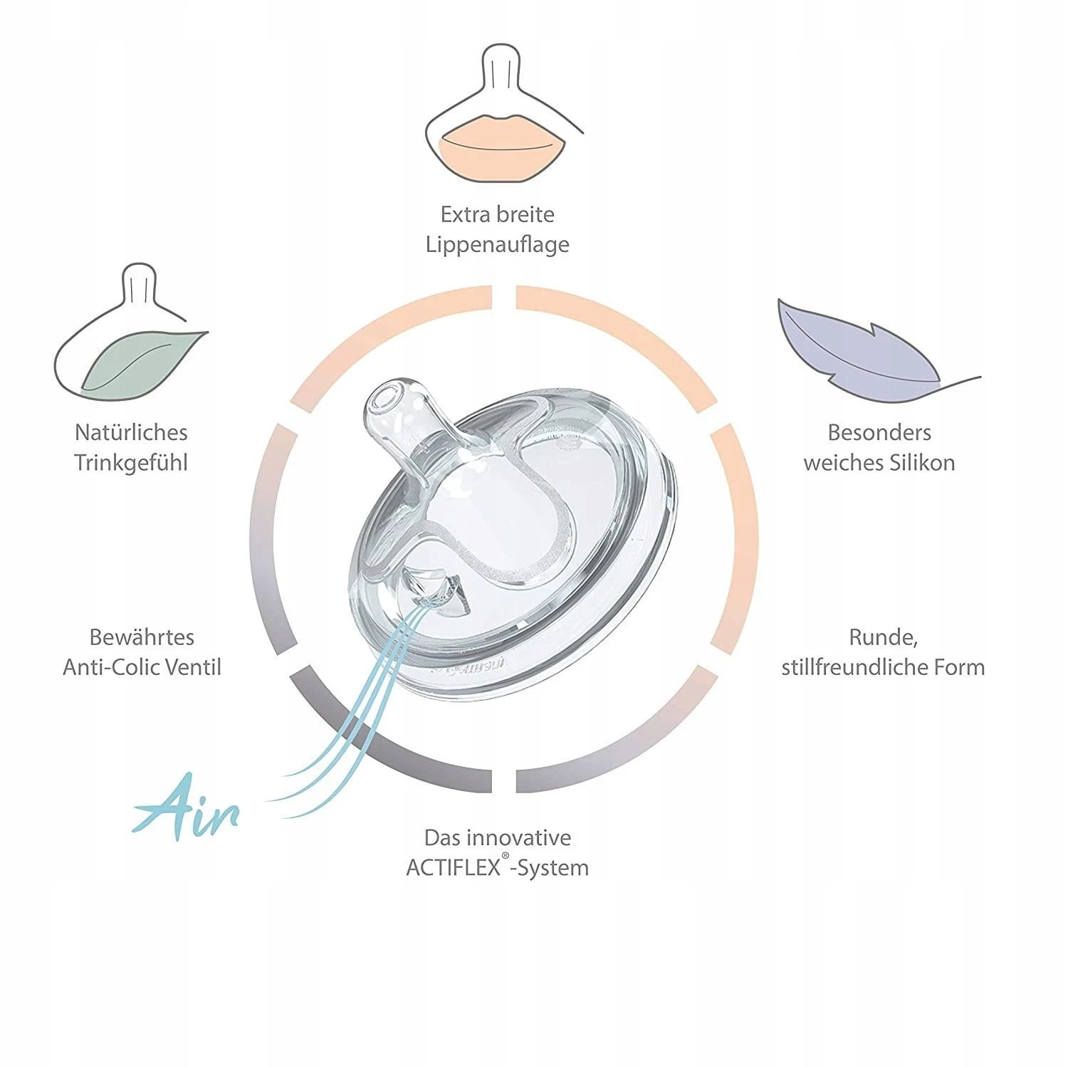 - Bewährtes Anti-Kolik-Ventil beugt Koliken vor und das ACTIFLEX-System sorgt für einen ruhigen Getränkefluss und verhindert das Zusammenziehen des Saugers.