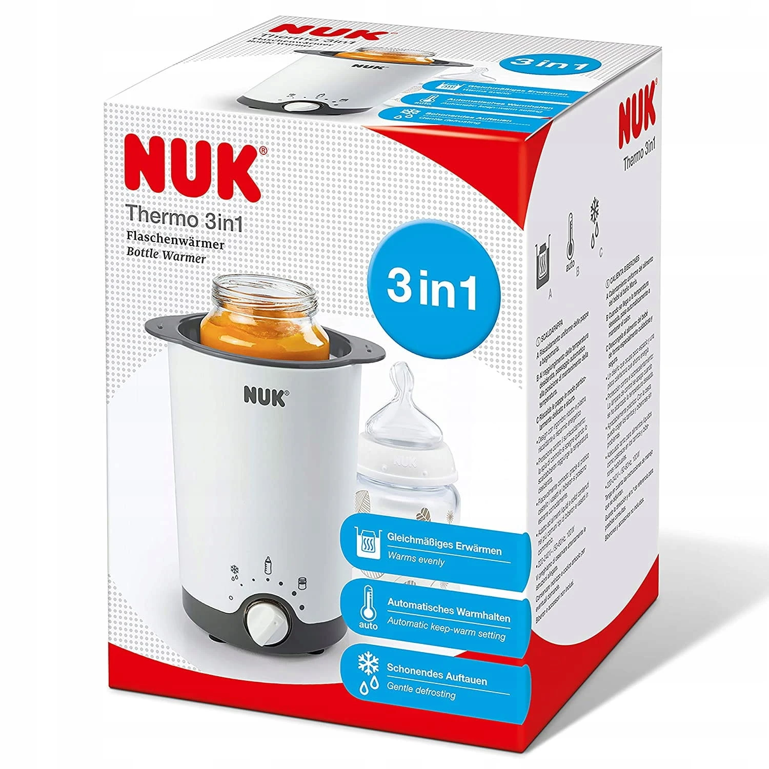 - Der NUK Thermo 3 in 1 Wärmer hat einen besonderen Vorteil – beim Auftauen wird die Nahrung schonend erwärmt, um wichtige Vitamine und Nährstoffe zu erhalten.