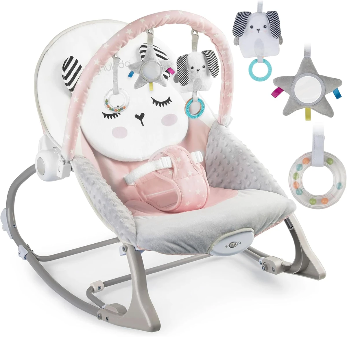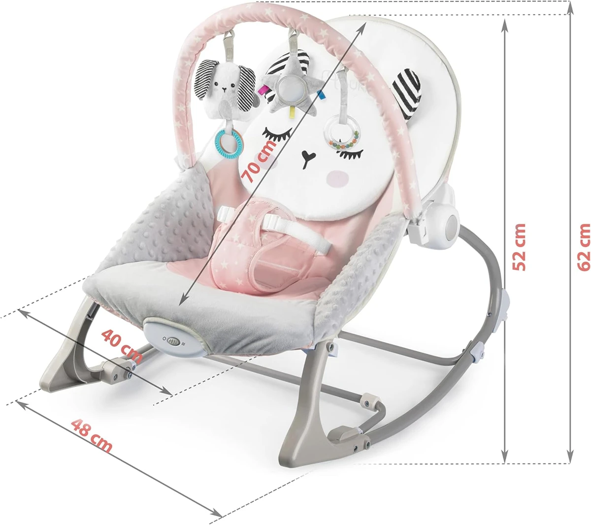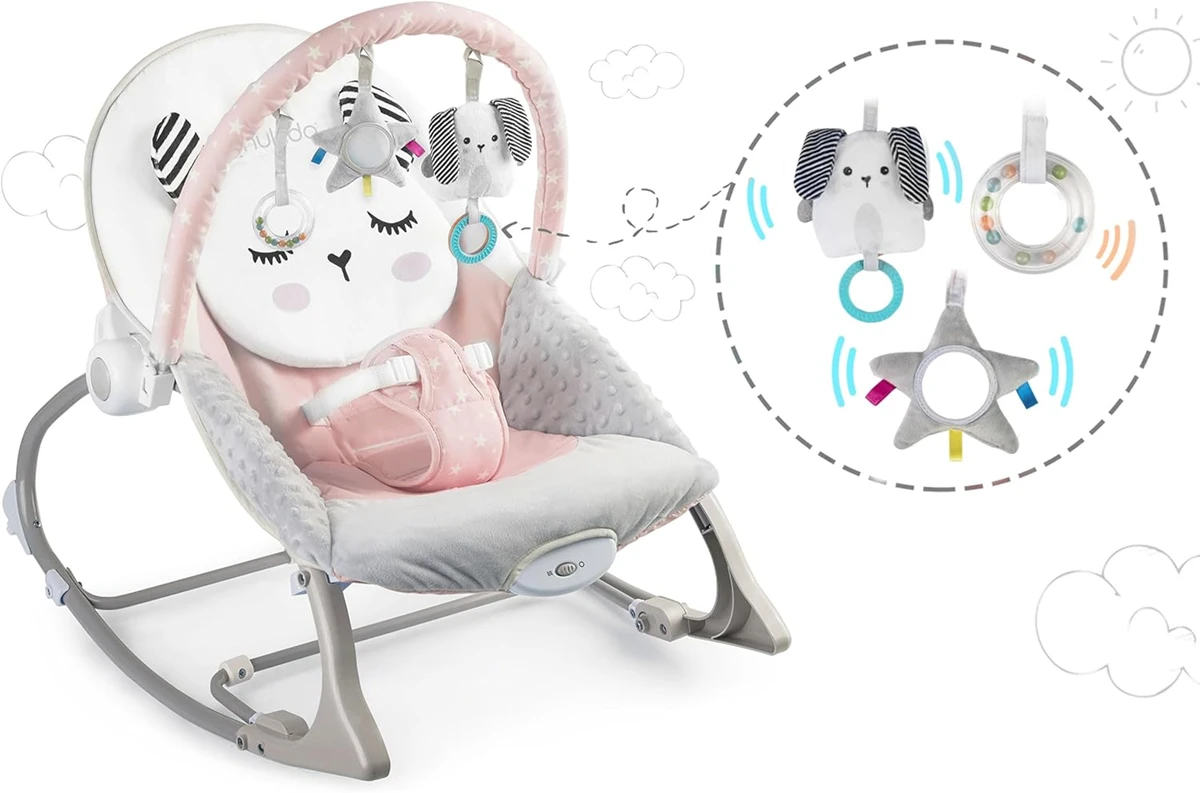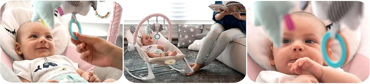 - Mit vielen Funktionen, die helfen, das Baby zu beruhigen, wie Melodien, Spielbogen mit Spielzeugen und beruhigende Vibrationen. Alles in leuchtenden Farben, ideal für kleine Mädchen und Jungen.