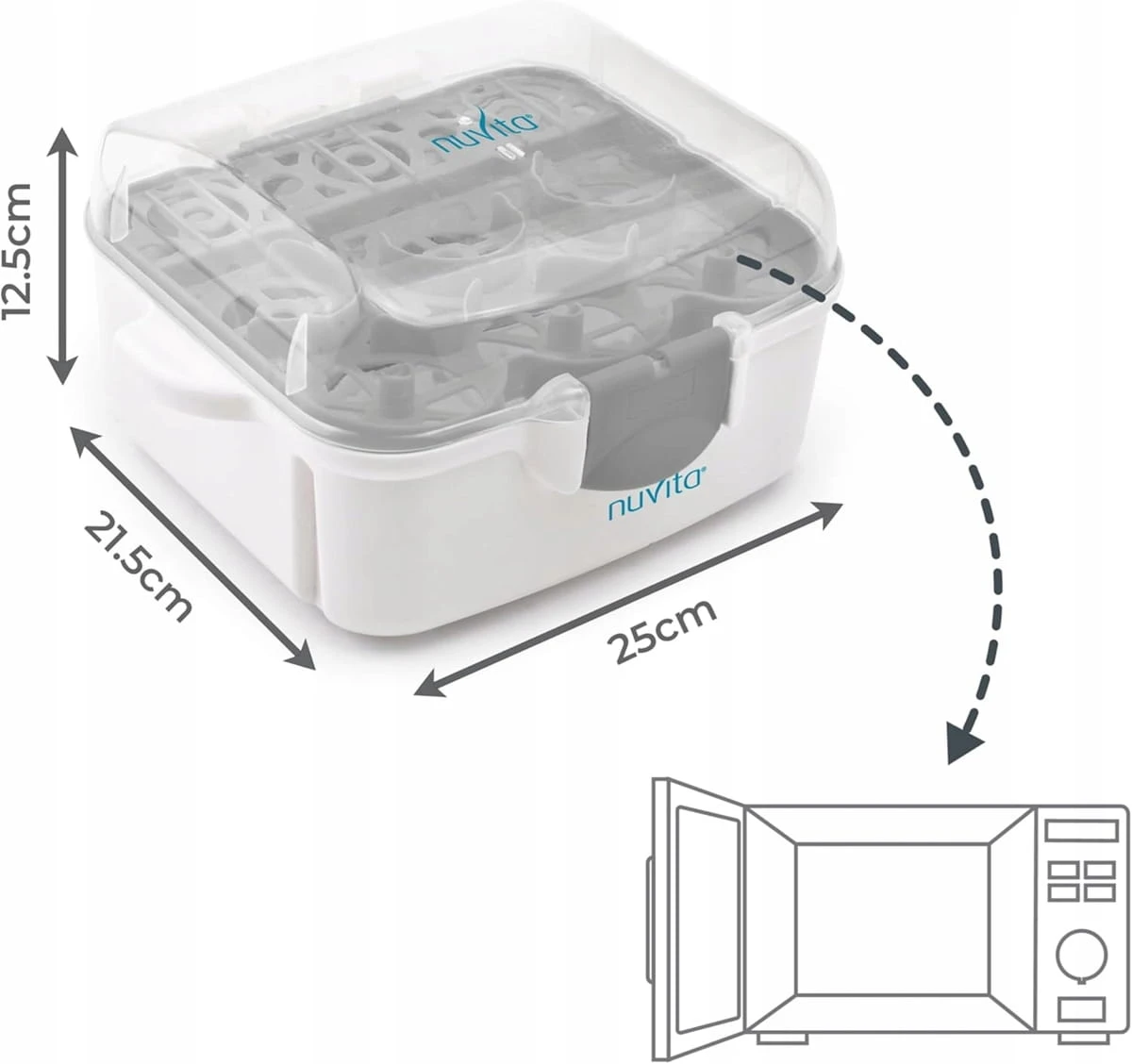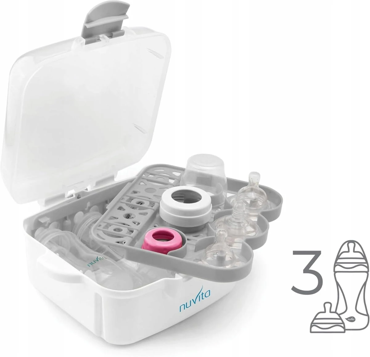 NUVITA 1085 Mikrowellen-Sterilisator für 3 Flaschen und Zubehör